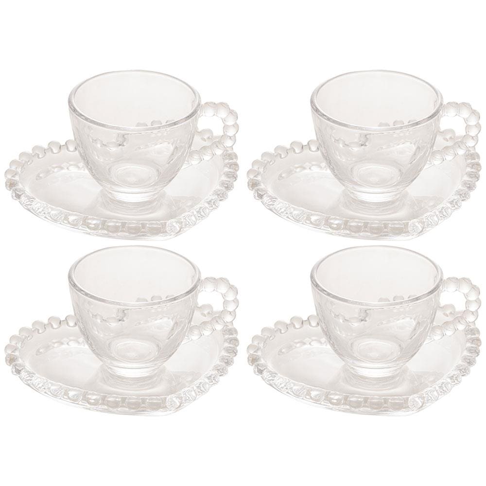 Conjunto com 4 Xícaras e Pires para Café Wolff Pearl Coração em Cristal - 85 ml