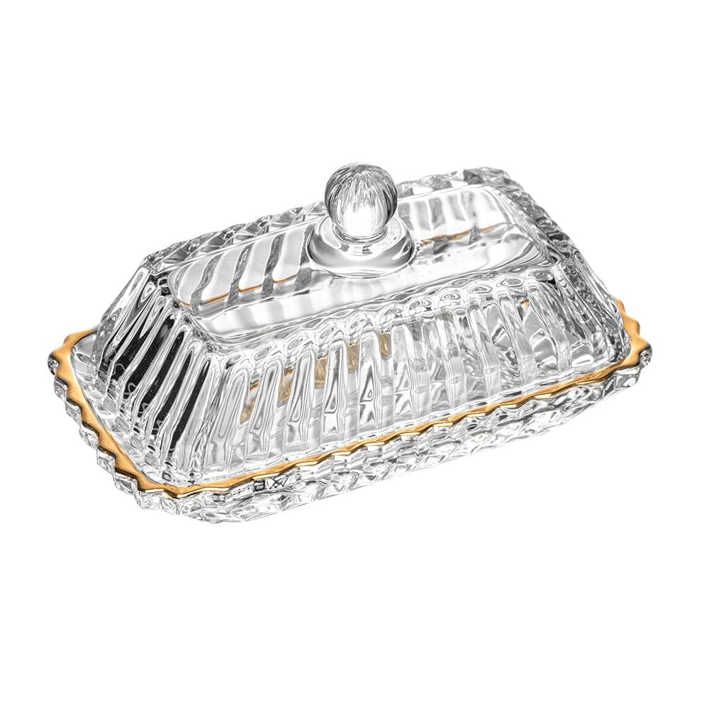 Manteigueira Retangular Wolff Império 15,5x7,5x8,5cm Cristal com Tampa e Fio de Ouro
