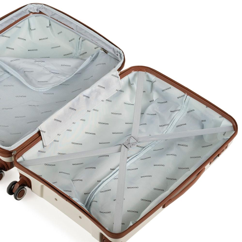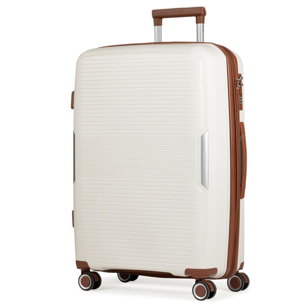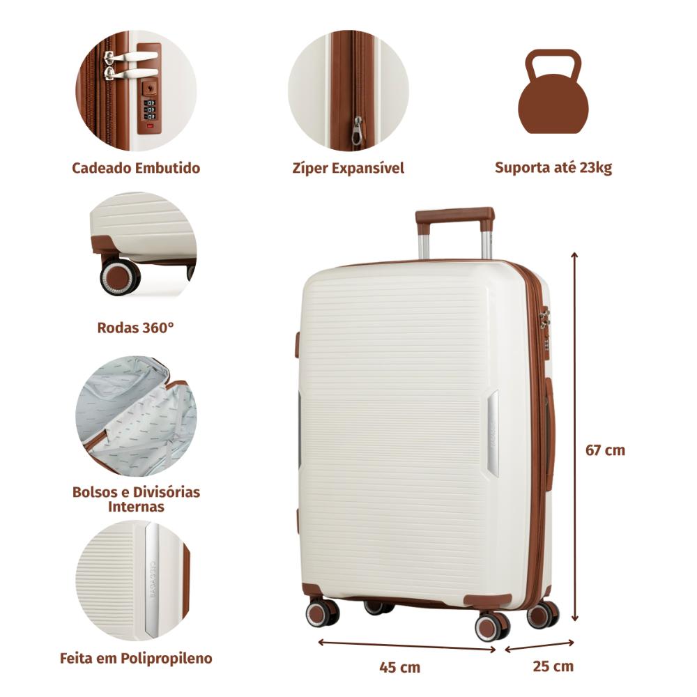 Mala Média 23 Kg Polipropileno 4 Rodas Malta Branca e Marrom