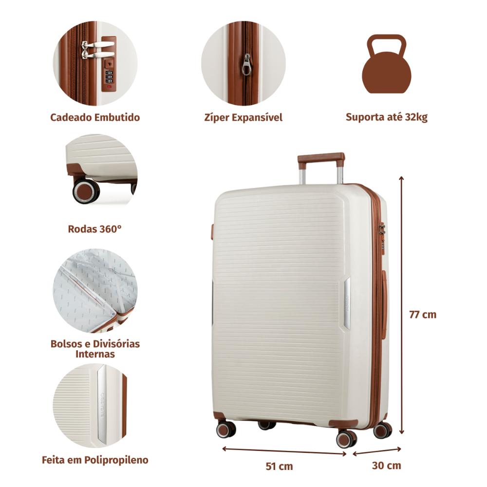 Mala Grande 32 Kg Polipropileno 4 Rodas Malta Branca/Marrom