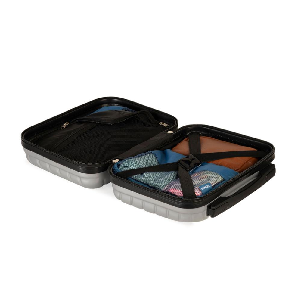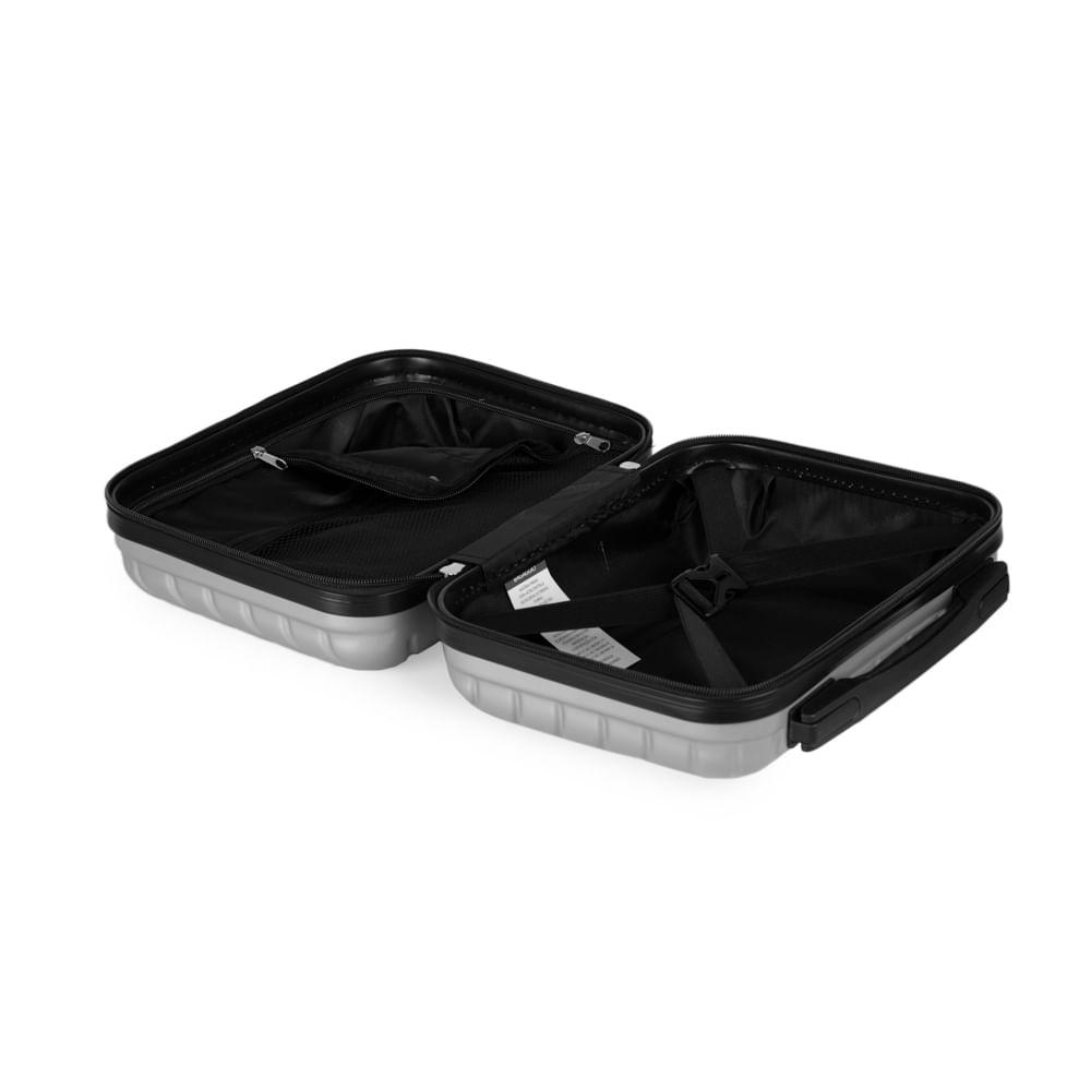 Frasqueira Detroit Prata A Frasqueira Detroit foi pensada para oferecer organização e praticidade no dia a dia ou em viagens. Seu design moderno e resistente é perfeito para quem busca armazenar pequenos itens com segurança e estilo. Principais Atributos Material Rígido Resistente Estrutura durável que protege seus itens contra impactos e é fácil de limpar. Alça Ajustável e Fixa Mais conforto no transporte. Interior Organizado e Funcional Divisórias internas com zíper e cintas elásticas para manter seus objetos no lugar. Ideal para cosméticos, acessórios, produtos de higiene pessoal ou roupas. Diferenciais: Alça Carona: Com a Alça carona é possível prender a frasqueira na sua mala, facilitando o transporte. Bagaggio Responde Essa frasqueira pode ser levada como bagagem de mão? Sim, seu tamanho é ideal para acomodar no compartimento superior ou sob o assento. O material é impermeável? O material oferece resistência à água, protegendo seus itens contra pequenos acidentes. É fácil de limpar? Sim, tanto a parte externa quanto o forro interno são feitos de materiais que facilitam a limpeza. Quais cores estão disponíveis? Disponível nas cores preto, lilás, prata e rosé, combinando com diferentes estilos e ocasiões.