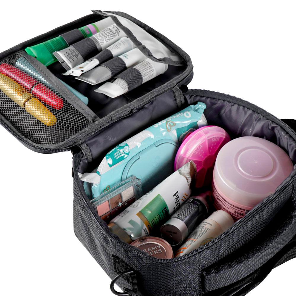 A Frasqueira Edimburgo Preta é a escolha ideal para quem busca praticidade e elegância. Esta necessaire rígida na cor preta oferece proteção superior para seus itens pessoais, contando com divisórias internas que facilitam a organização de maquiagens e produtos de higiene. Equipada com alça de mão e alça transversal ajustável, ela é perfeita para levar como bagagem de mão com total segurança e estilo.