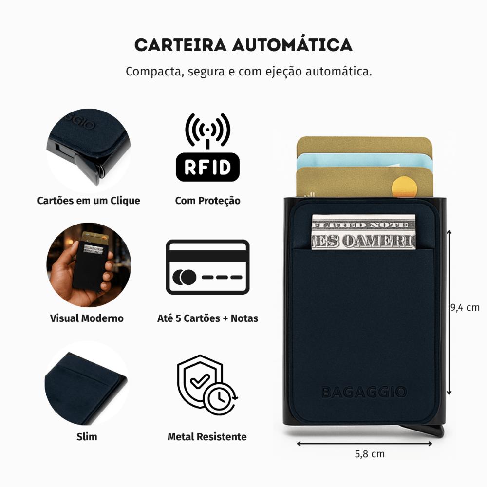 Carteira Automática Masculina Metal Advanced Preta