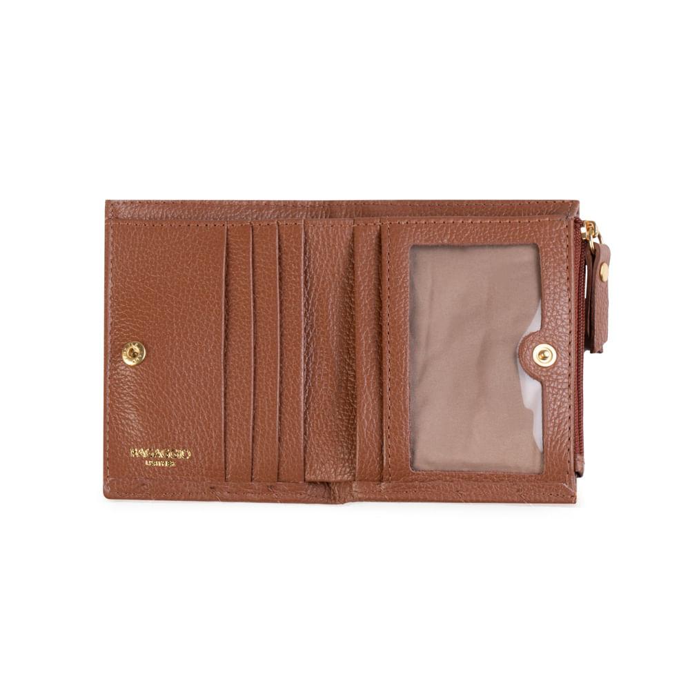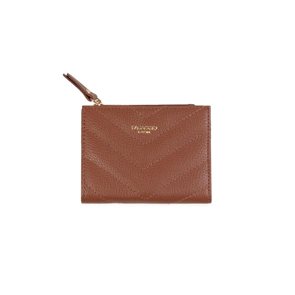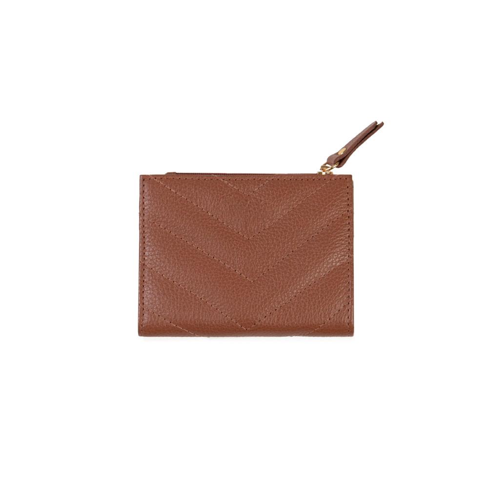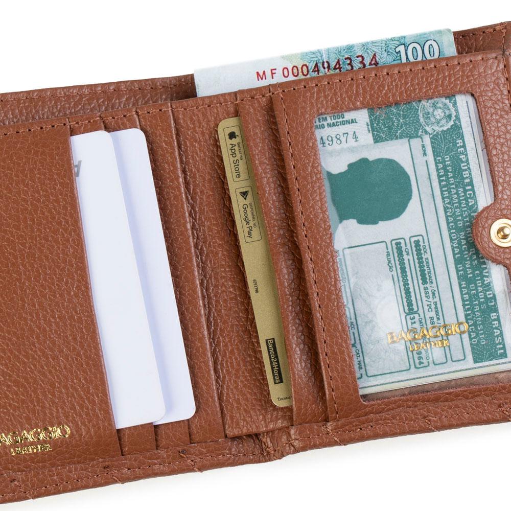Carteira Feminina De Couro Pequena Com Fecho De Botão Zig Zag Matelassê Caramelo
