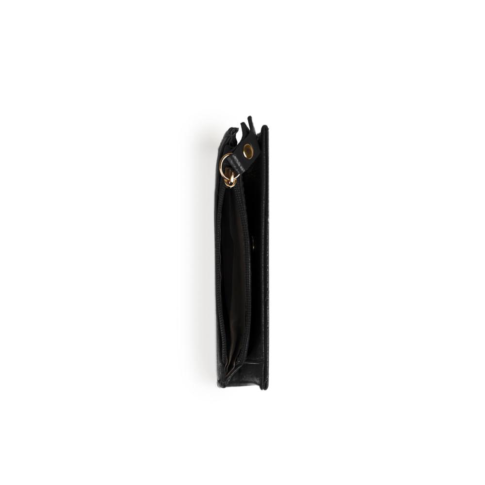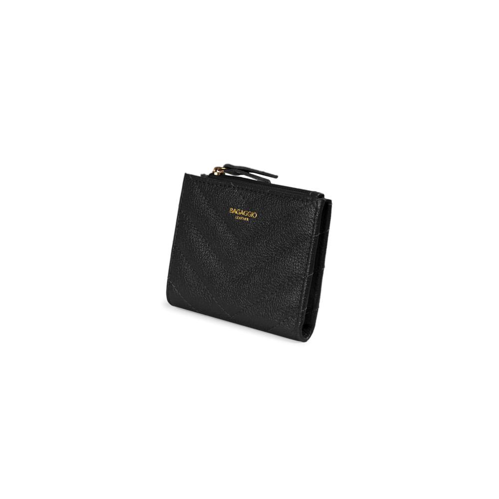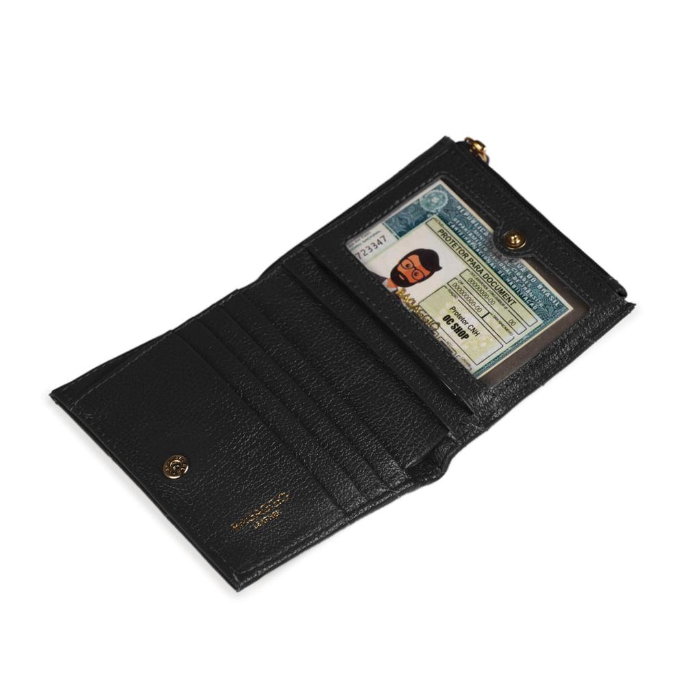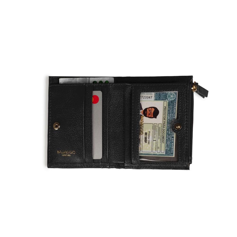 Carteira de Couro Feminina com Zíper Pequena Zig Zag Preta