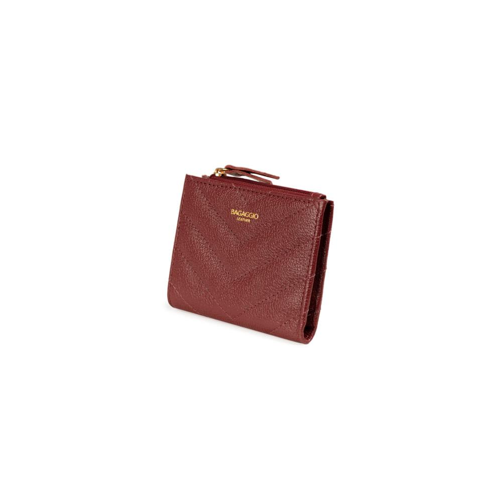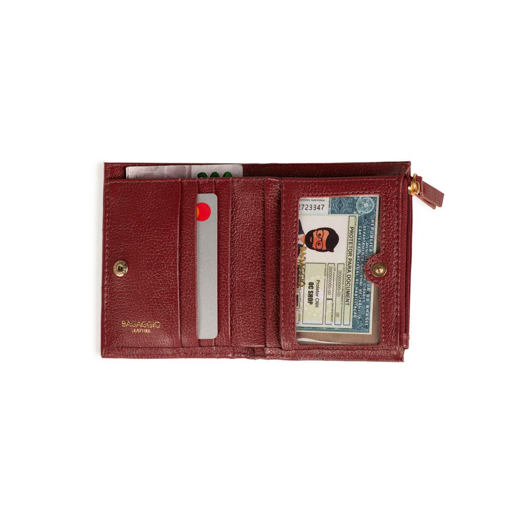 Carteira Feminina de Couro Botão Zig Zag Metalasse Vinho
