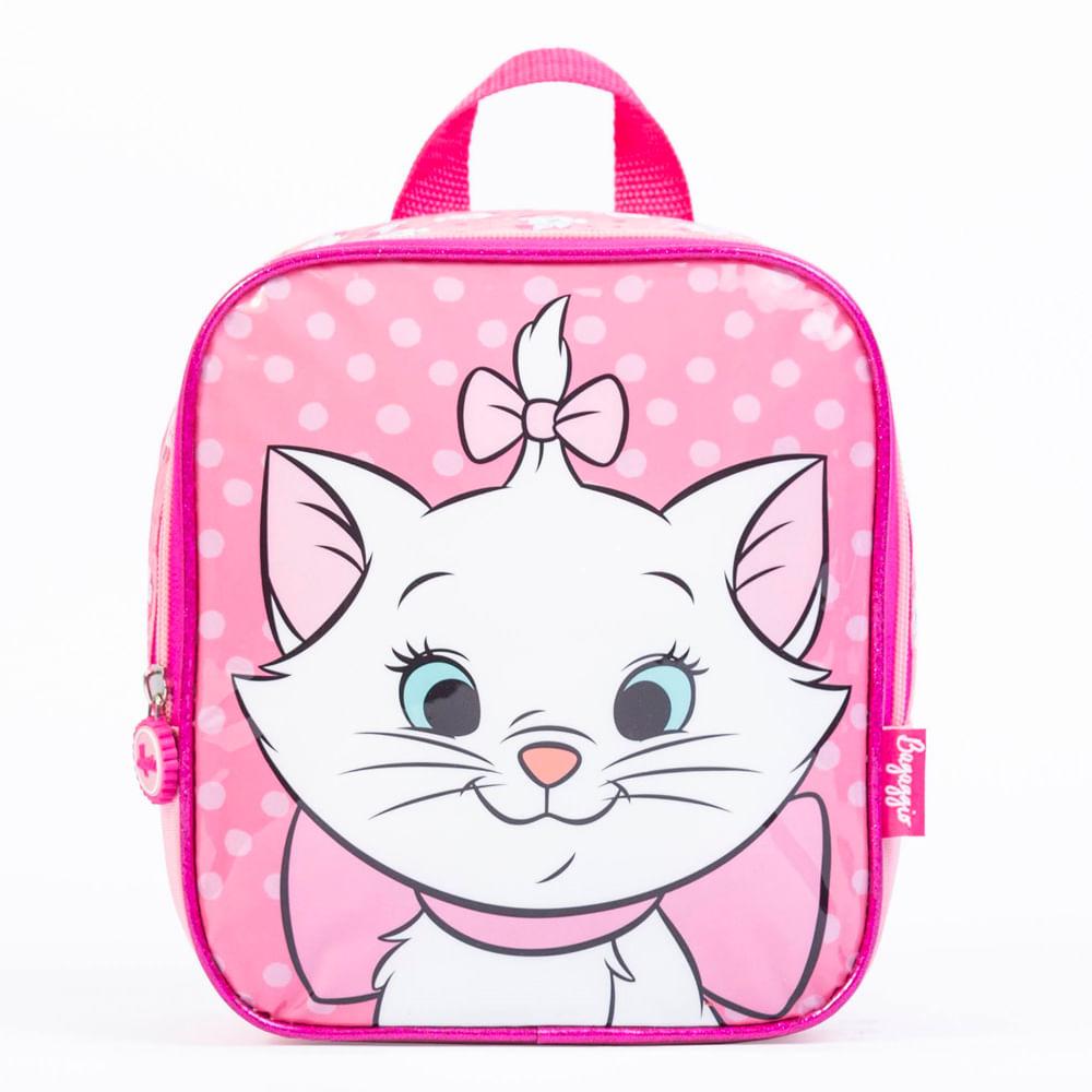 Com a lancheira Disney Gatinha Marie a diversão do mundo da mais fofa e charmosa gatinha da Disney acompanha a sua pequena até na hora do lanche. Feita em material bastante resistente e durável, tem o selo do INMETRO certificando a qualidade e segurança do produto. Seu estilo mochilinha, tem alças ajustáveis às costas e alça carona, que pode ser acoplada no carrinho da mochila facilitando o transporte. Com design exclusivo da Bagaggio, seu puxador é personalizado e de borracha, deixando o produto mais incrível. Possui amplo espaço interno com forro térmico impermeável que ajuda a preservar a temperatura do seu lanche até a hora do recreio, bem como um elástico para prender a garrafinha. Potes e Garrafinhas não acompanham a Lancheira