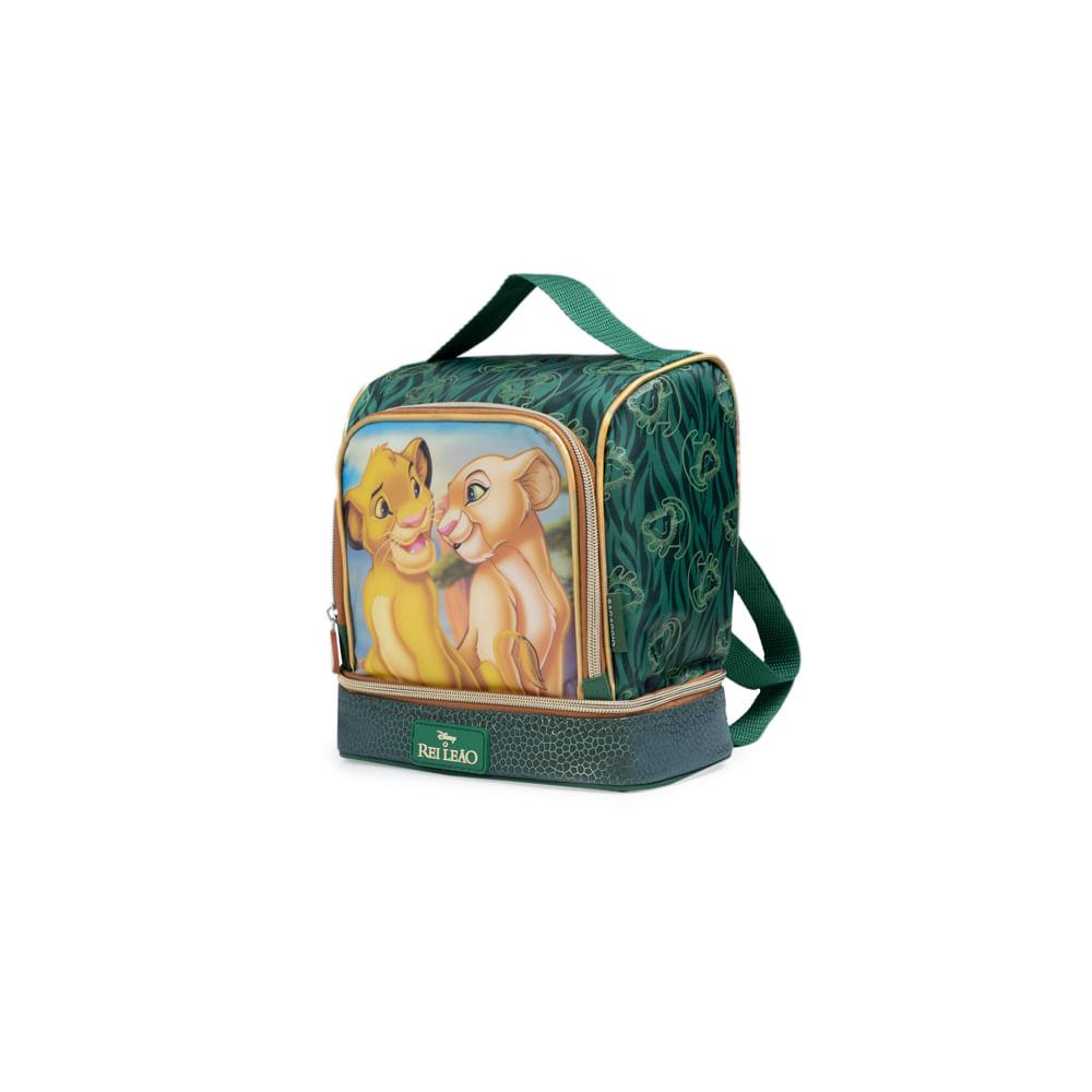 Lancheira Térmica Infantil Masculina Rei Leão Simba e Nala Verde Escuro