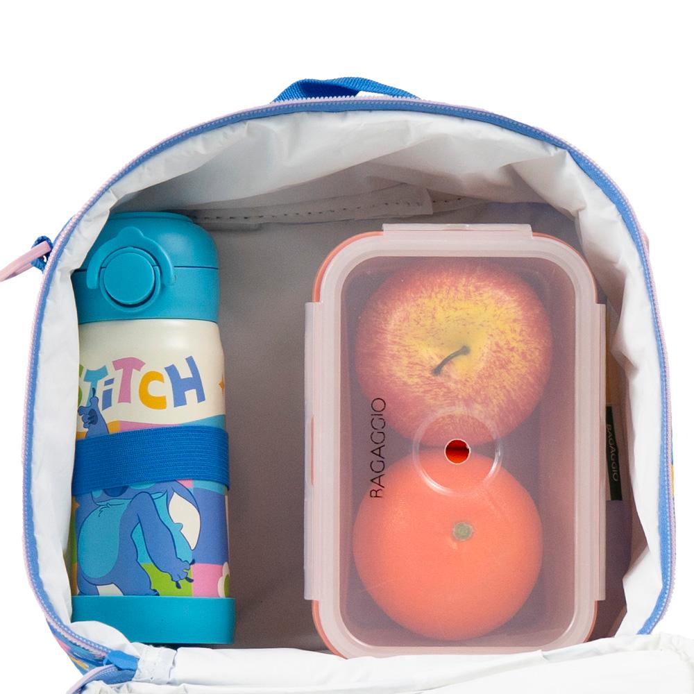 Kit composto por lancheira térmica e garrafa térmica de 350ml, com estampa do personagem Stitch. A lancheira possui revestimento interno térmico, ideal para manter os alimentos conservados por mais tempo, além de fechamento em zíper e alça superior que facilita o transporte.A garrafa térmica tem capacidade de 350 ml, é leve, prática e ideal para o consumo de água ou bebidas ao longo do dia. O kit apresenta design feminino, na cor azul, sendo indicado para uso escolar, passeios e atividades do dia a dia. Produzido com materiais resistentes e duráveis, garantindo praticidade e funcionalidade. Especificações:Dimensões: Lancheira: 20 x 25 x 13 cm | Garrafa: 18 x 7,5 x 7,5 cmPeso: Lancheira: 0,360kg | Garrafa: 1kgMaterial:PoliésterCapacidade: Lancheira: 6,5L | Garrafa: 350mlGarantia: 90 diasFaixa etária: Infantil (3 a 8 anos)Outros atributos:- Lancheira é térmica. - Alça carona - Possui canudo - Parede dupla com vácuo - Fechamento hermético