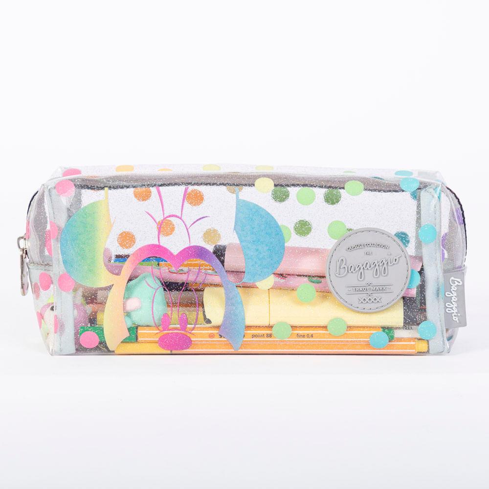 O Estojo Minnie Rainbow 21J possui um estilo juvenil mas vai agradar a todas as idades. O modelo é confeccionado em PVC transparente com glitter. Tem espaço de sobra pra guardar todos os lápis, canetas, borrachas e muito mais. Seu fecho é em zíper é plastico com efeito rainbow. Os puxadores são de metal personalizado. DIFERENCIAIS: - Modelo confeccionado em pvc plástico e aplicação de glitter; - Puxadores de metal personalizado; - Zíper plástico colorido com efeito rainbow. - Amplo espaço interno; *Imagem meramente ilustrativa. Canetas e acessórios não acompanham o estojo.