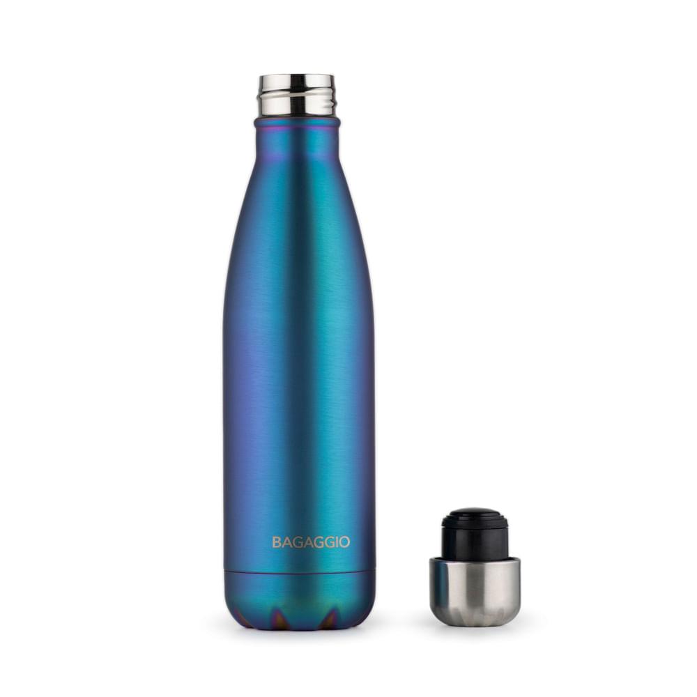 Garrafa Termica Holografica 500ml A Garrafa Térmica 500ml Colors além de linda é super funcional. Seu acabamento é em aço escovado colorido. Sua tampa hermética garante mais segurança na hora de transportar sua bebida. Tamanhos disponível: 26 x 5 x 5 Principais Atributos Conservação Da Temperatura Mantém a temperatura do líquido frio por até 24h e quente por até 12h. Tampa à prova de vazamentos Nossa tampa é construída para resistir a pressões e impactos, proporcionando uma proteção adicional contra possíveis vazamentos. Bagaggio responde Essa Garrafa da Bagaggio têm garantia? Sim, tem garantia de 90 dias para defeitos de fábrica. Quantos litros essa garrafa comporta? Ela comporta 0,5 L Quanto pesa essa Garrafa? 290 gramas Modo de usar: Não levar a garrafa ao congelador ou freezer, pois pode romper o produto. Atenção! Produtos com personalização terão acréscimo de 1 a 3 dias úteis. Não serão aceitas trocas, devoluções ou cancelamentos dos produtos personalizados. Proteção térmica: Proteção térmica Projetada para mantér a temperatura de seus alimentos e bebidas por muito mais tempo, a proteção térmica é ideal para quem tem um rotina agitada na rua e prefere carregar sua própria comida. Fechamento Hermético: Fechamento Hermético Método de selagem completa do recipiente, impedindo a entrada ou saída de ar ou líquidos, garantindo assim a preservação do conteúdo interno.