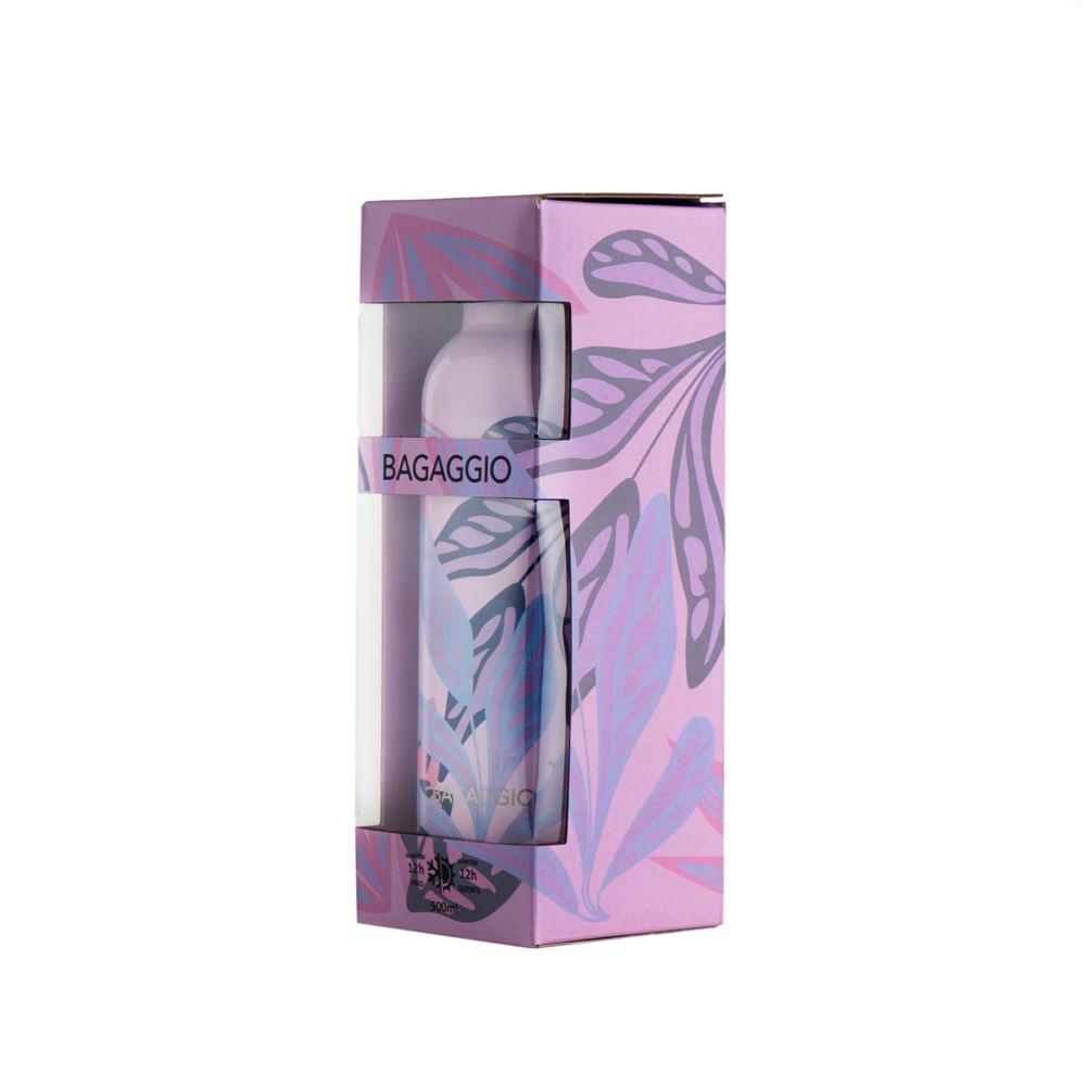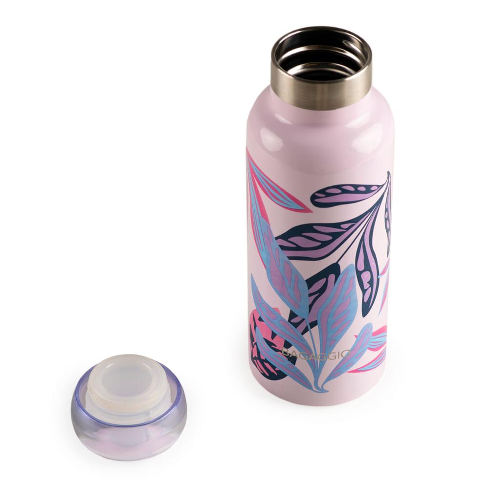 Garrafa Térmica 500ml Estampa Folhagens Tampa Silicone Rosa