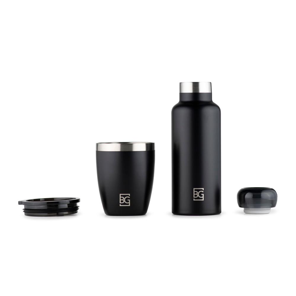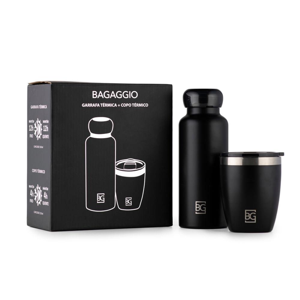 Kit Copo Térmico 350ml + Garrafa Térmica 500ml Moderno Preto