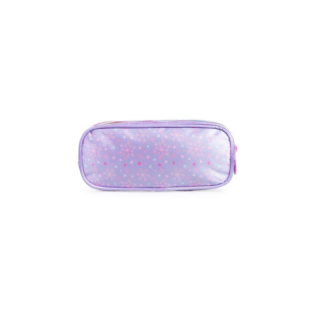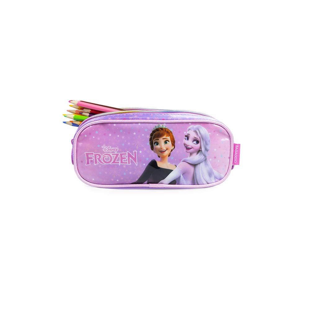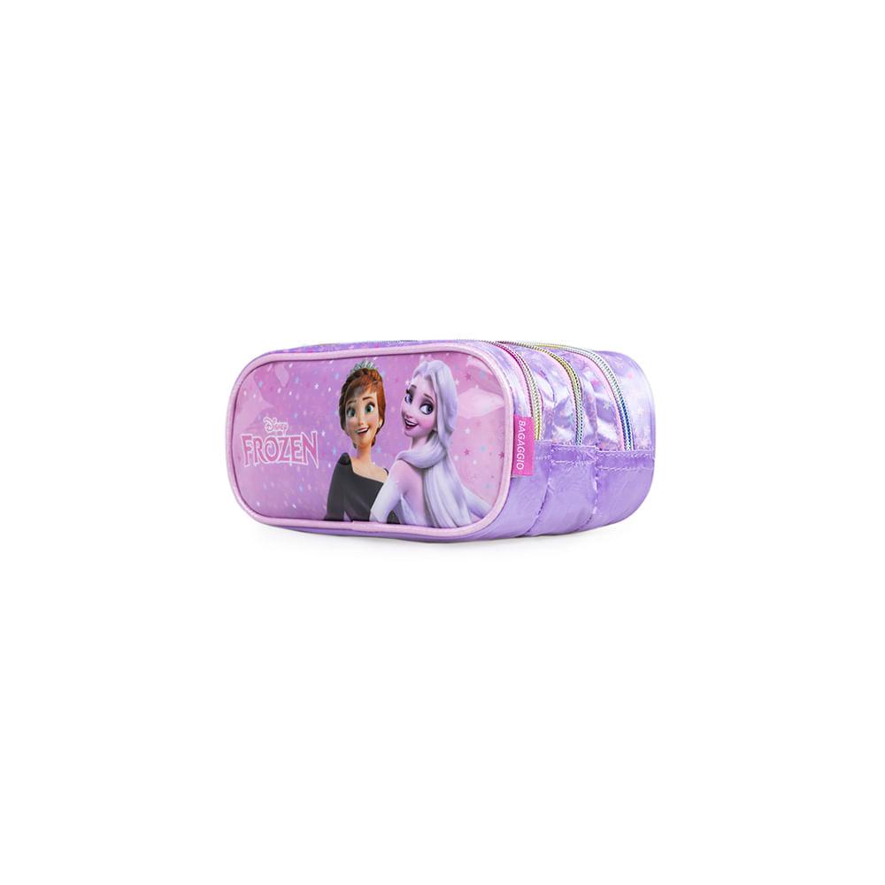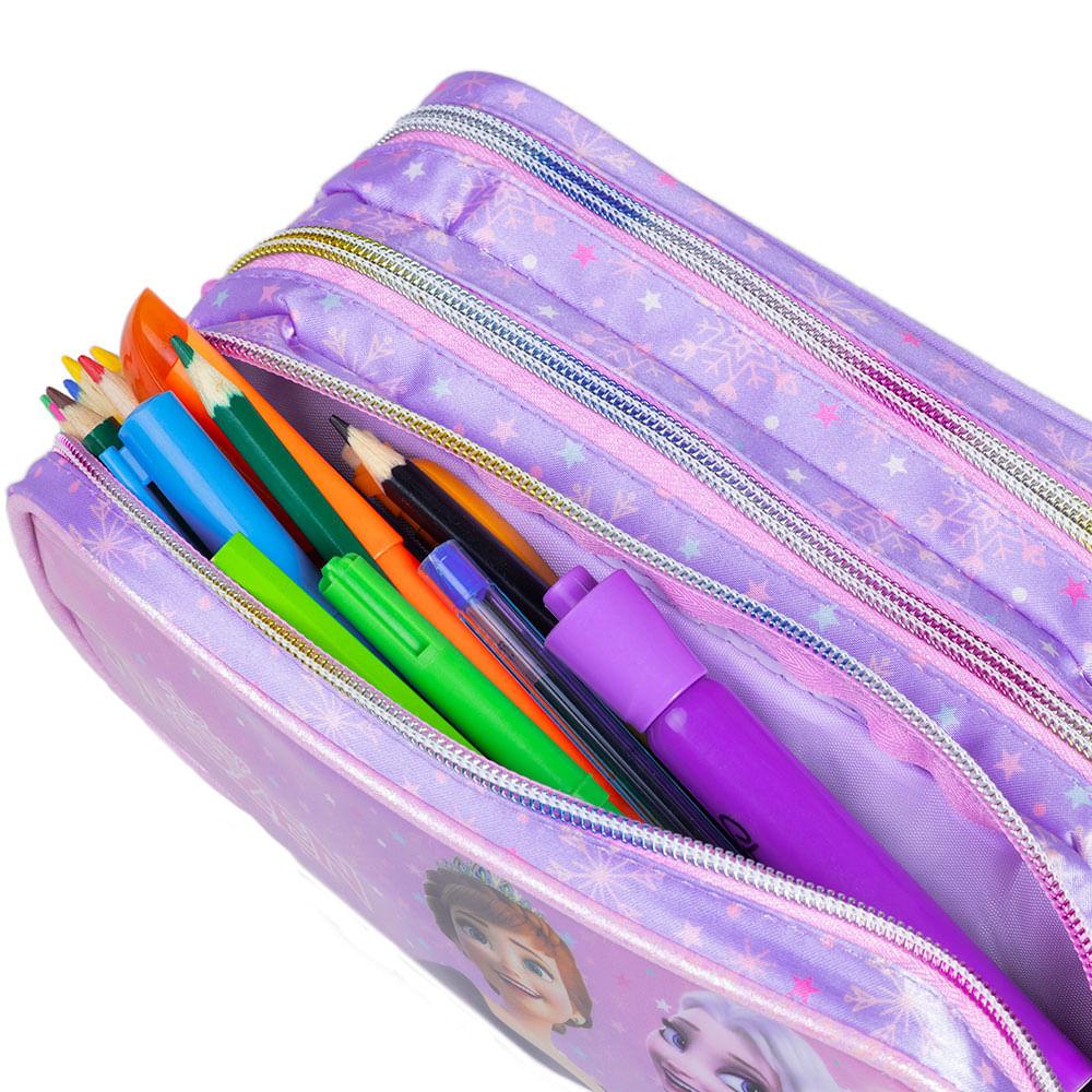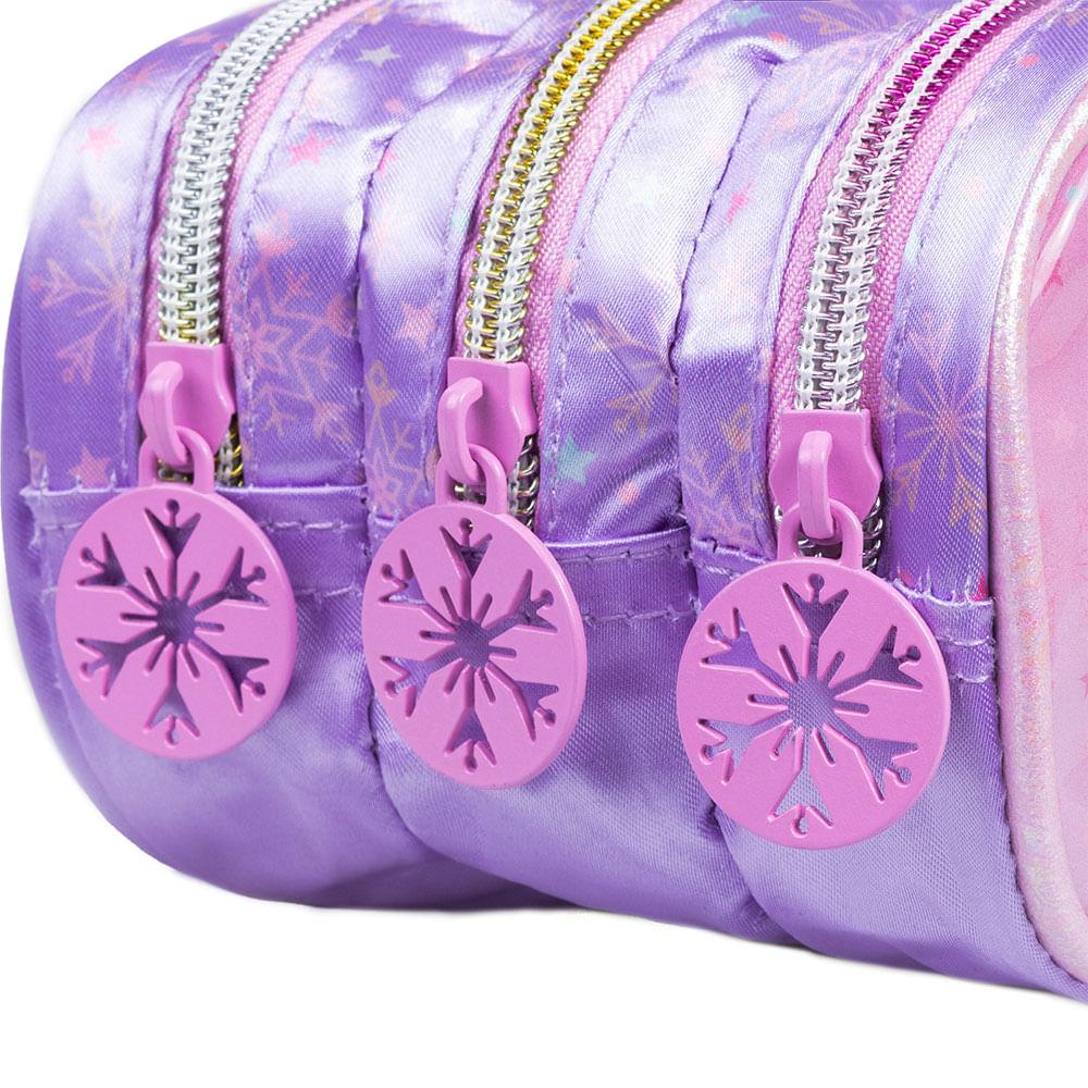 Estojo Escolar Feminino 3 Bolsos Frozen Premium Lilás