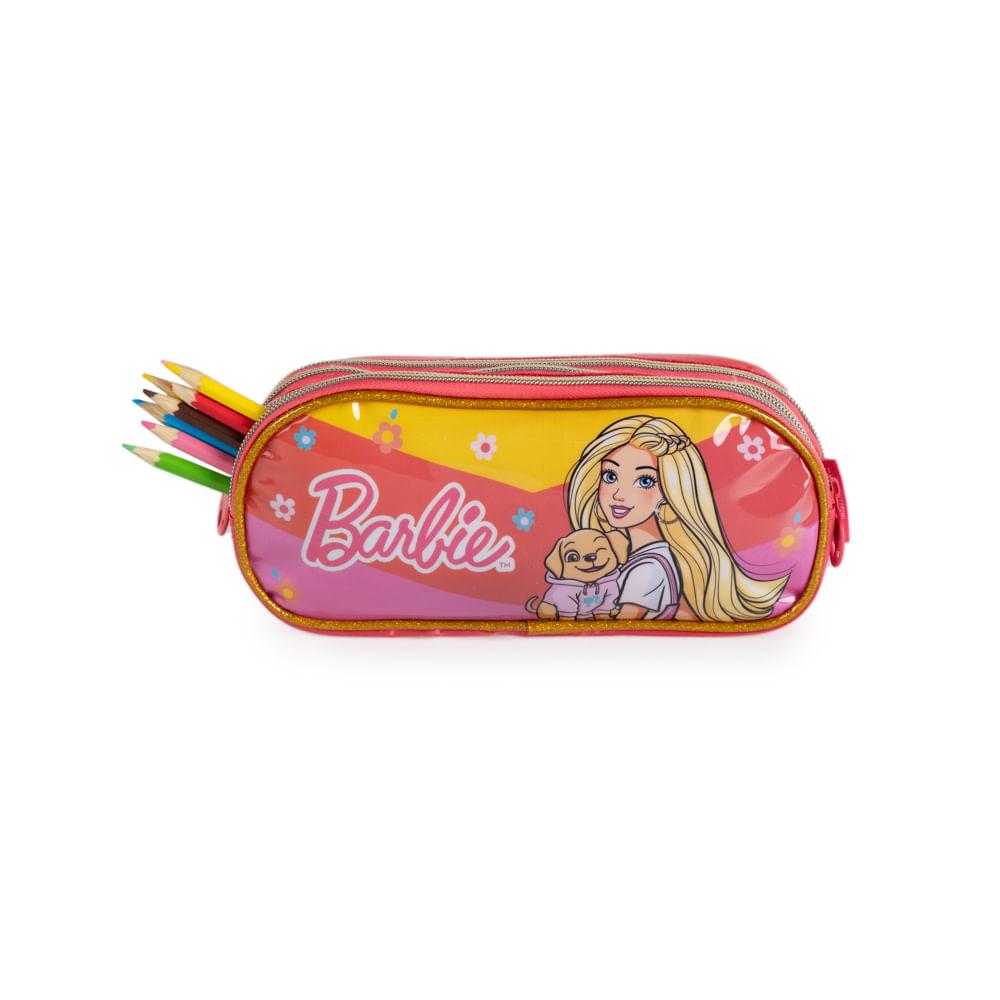 Confira toda graça e charme do estojo Barbie. Com estampa da Barbie e seu cachorro, é uma ótima opção para quem é fã da personagem. Diferenciais: - Modelo com 3 compartimentos; - Puxadores personalizados com o símbolo da Barbie; - Estampa da Barbie; - Amplo espaço interno; - Cor: Estojo Rosa Material Frontal com Glitter: Material Frontal com Glitter O Estojo possui em sua parte frontal detalhes em glitter, dando um visual glamuroso e brilhante ao material.