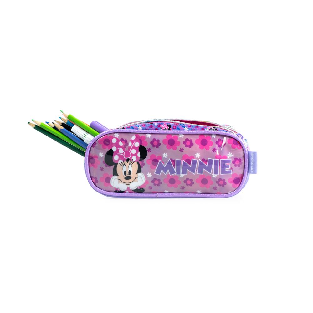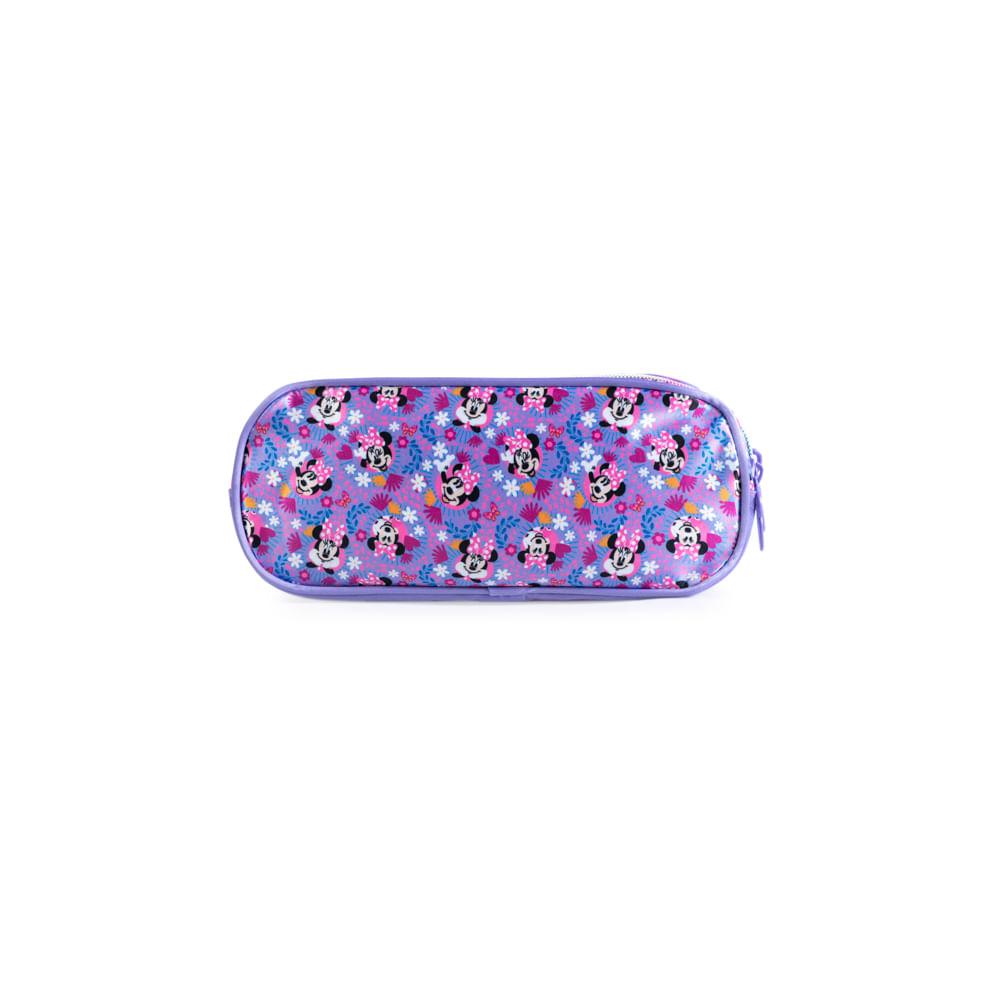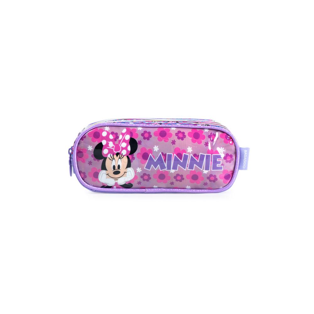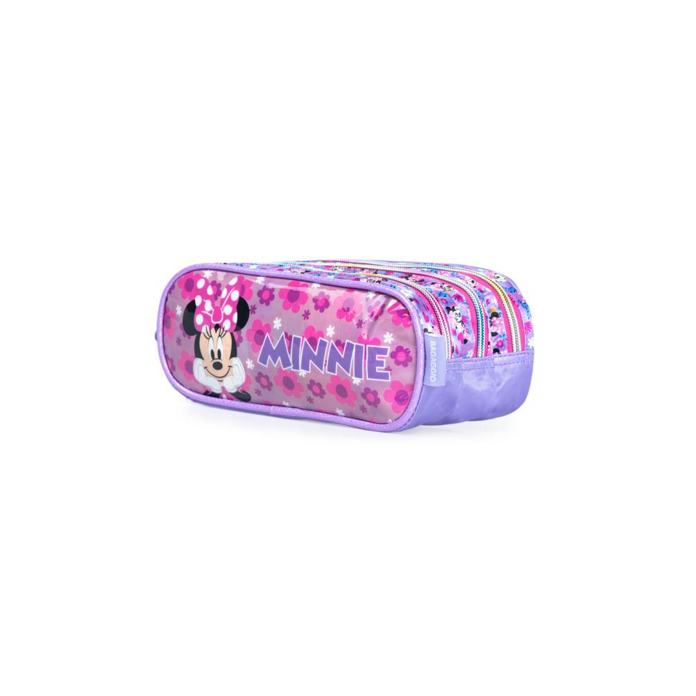 Estojo Escolar Infantil Feminino 3 Compartimentos Minnie Premium Lilás