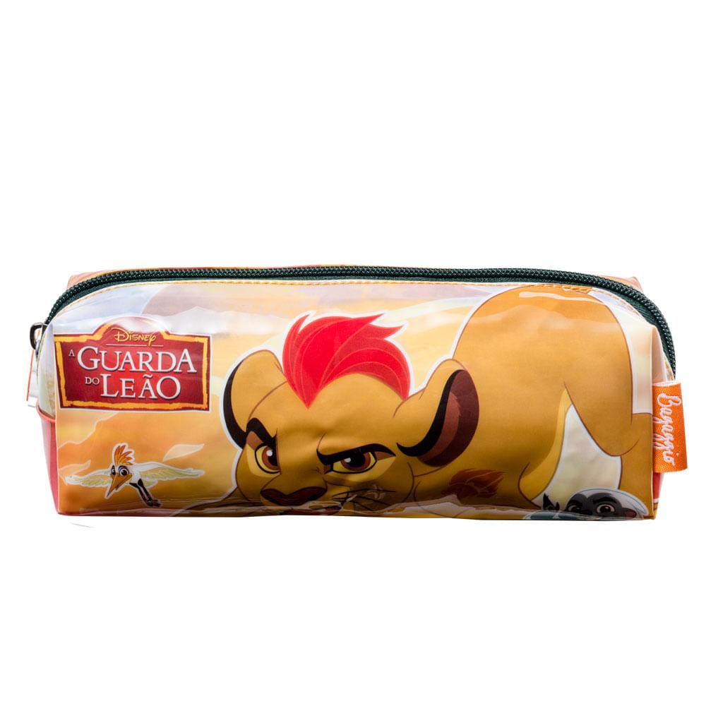 O Leão mais valente da Disney agora pode fazer parte do seu kit escolar. O Estojo da Guarda do Leão é tem espaço de sobra para todo o material escolar do seu pequeno. Seu fecho é em zíper e sua parte frontal é estampada com o desenho do leãozinho Kion. O modelo conta também com puxador personalizado. DIFERENCIAIS: - Feito em poliéster; - Puxador personalizado; - Amplo espaço interno.
