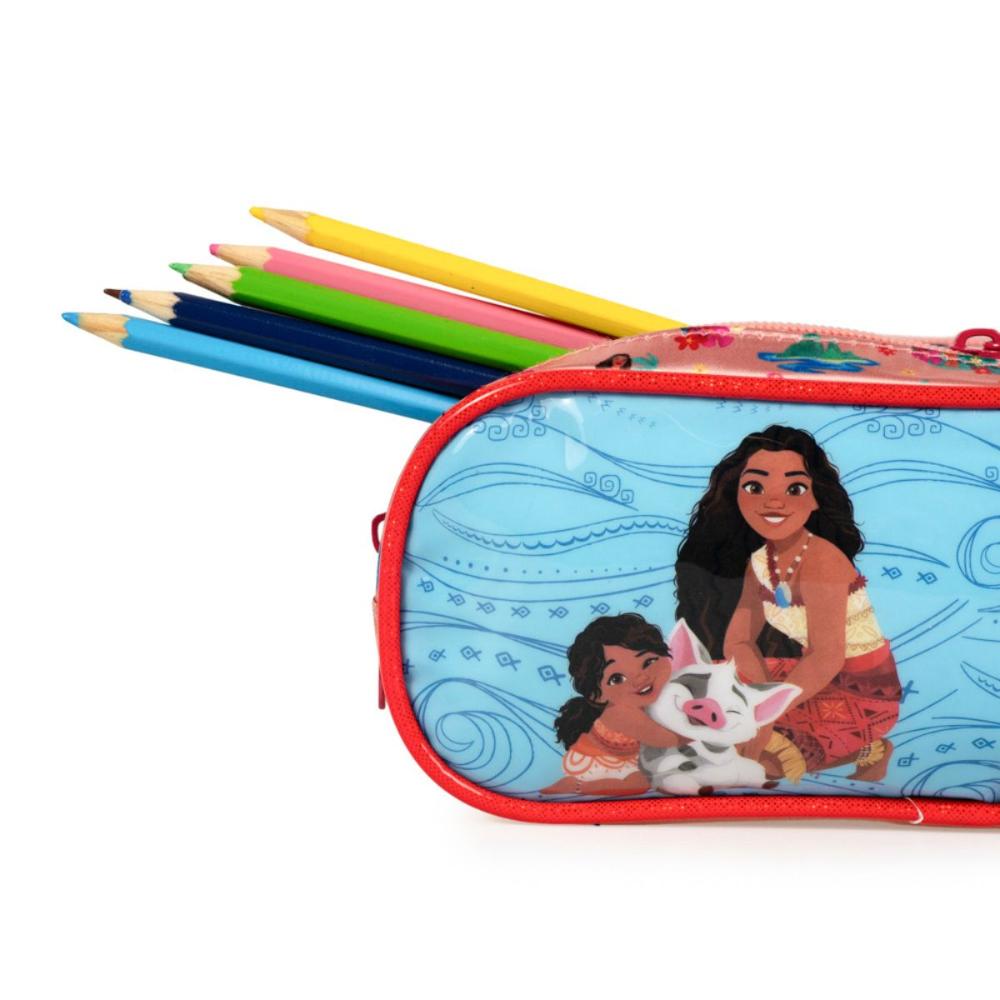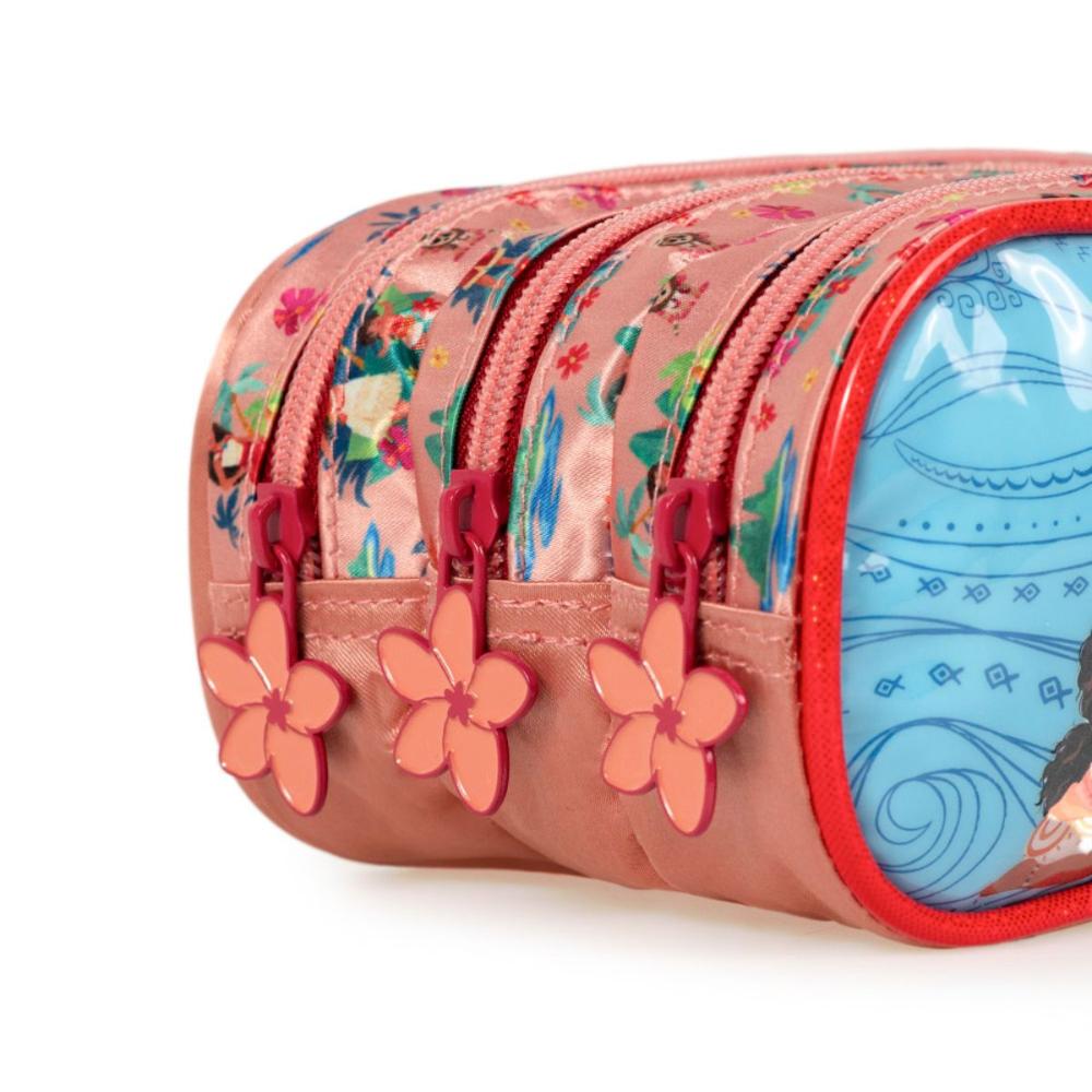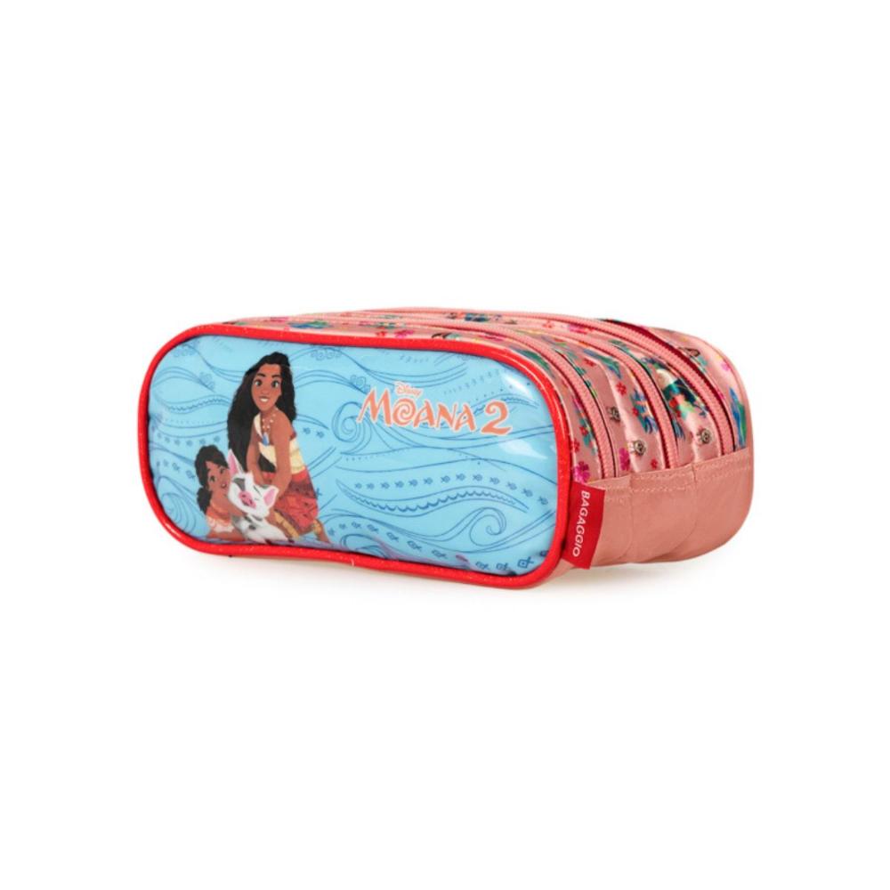 Estojo Escolar Feminino Disney Moana Rosa 3 Compartimentos