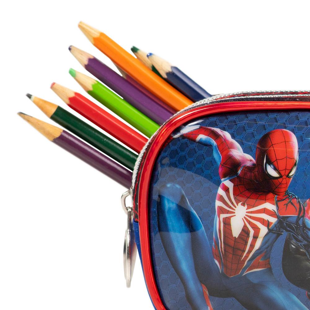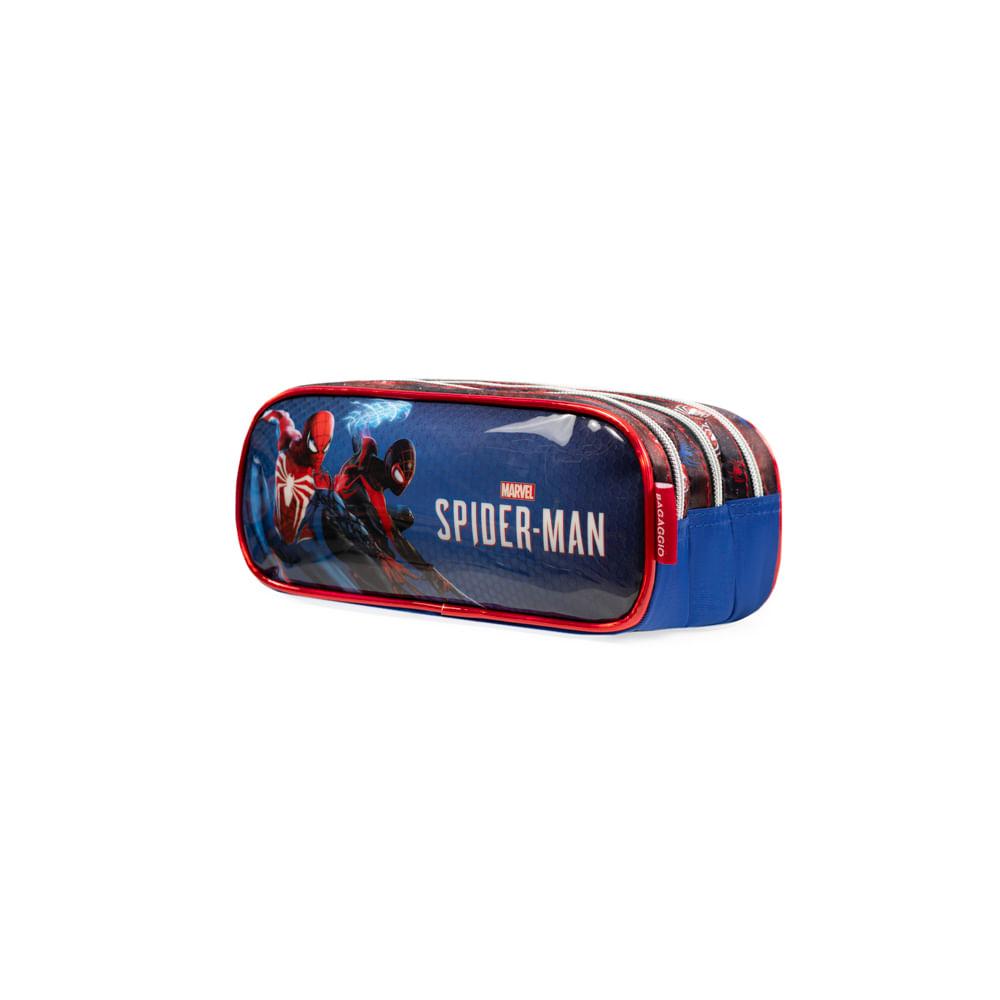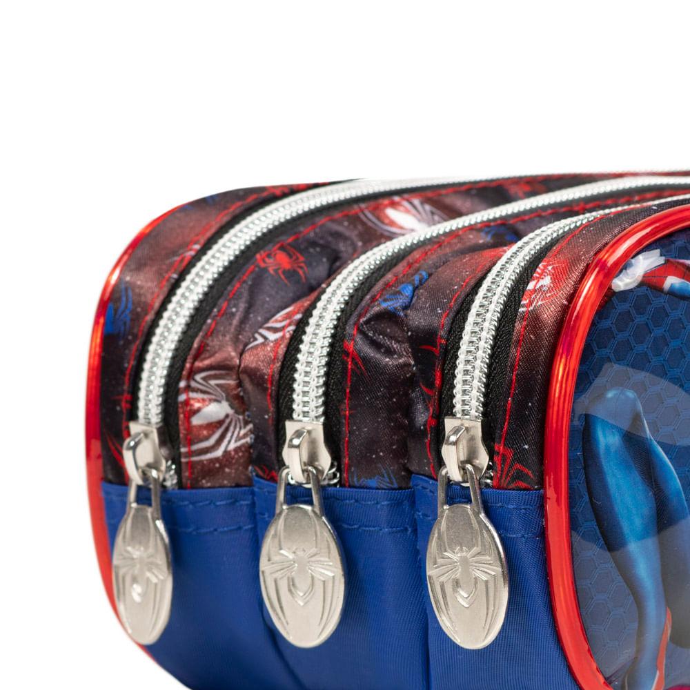 Estojo Escolar Masculino Homem Aranha Vermelho Três Compartimentos