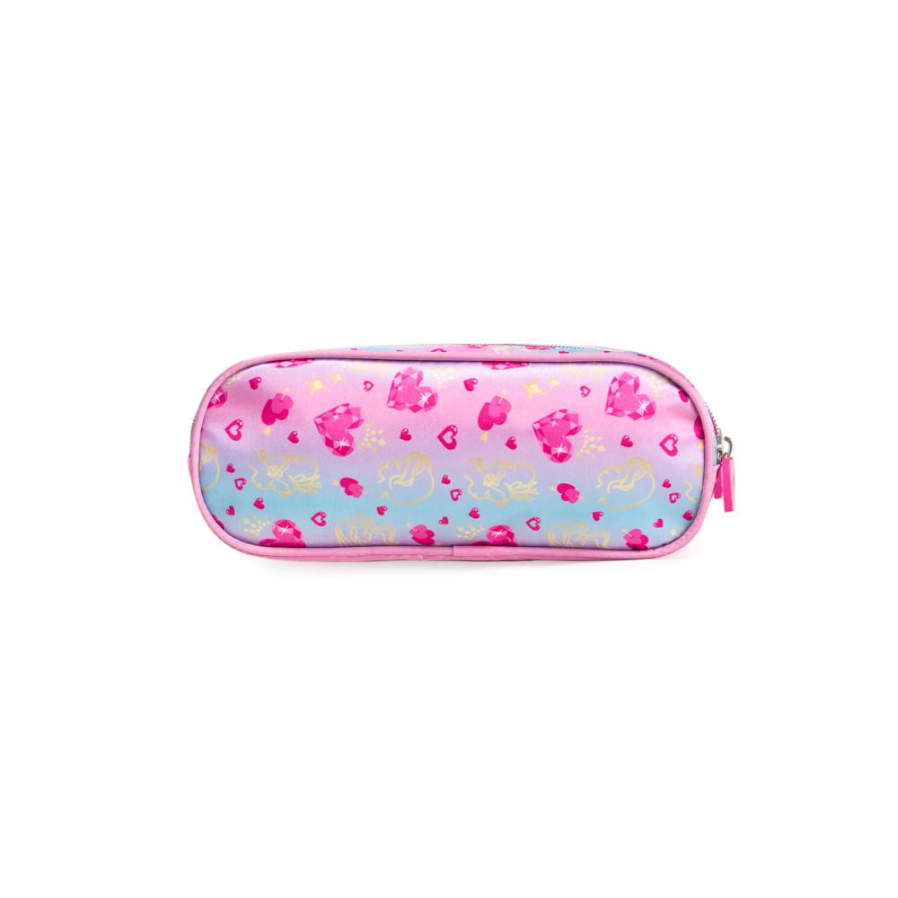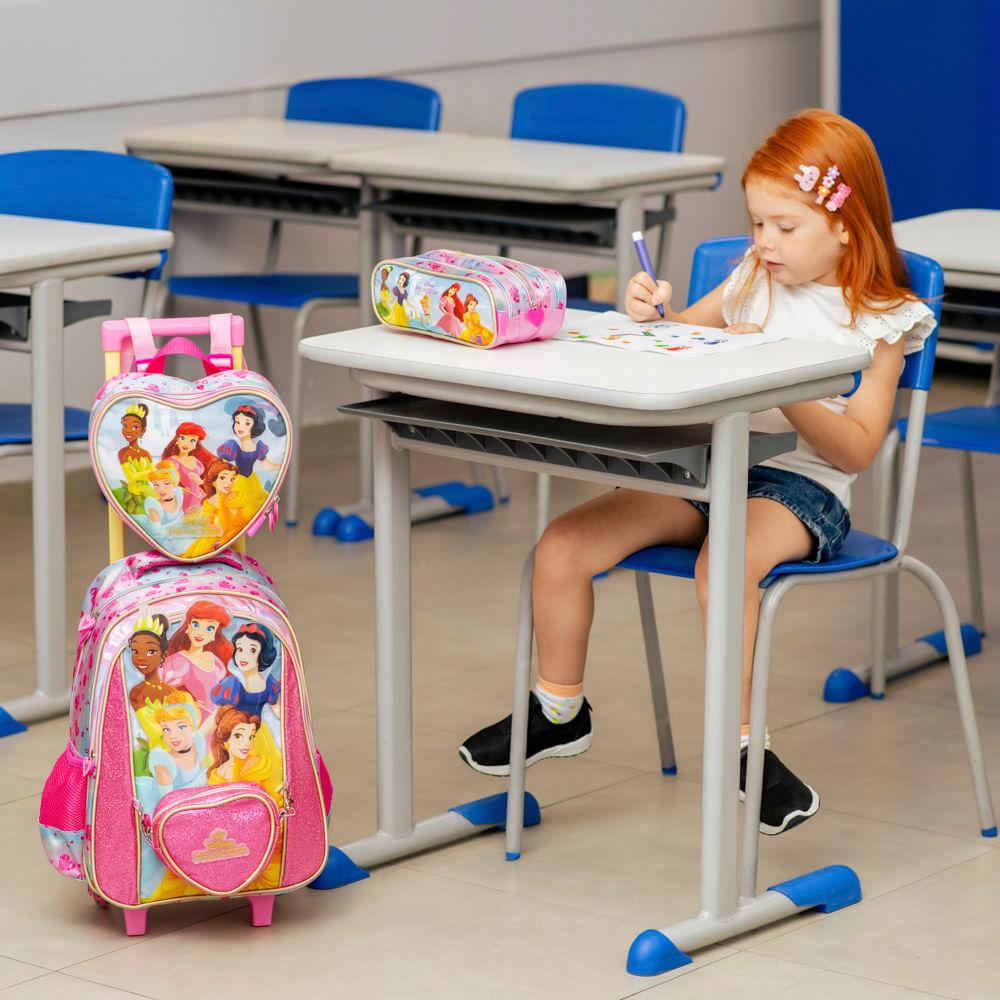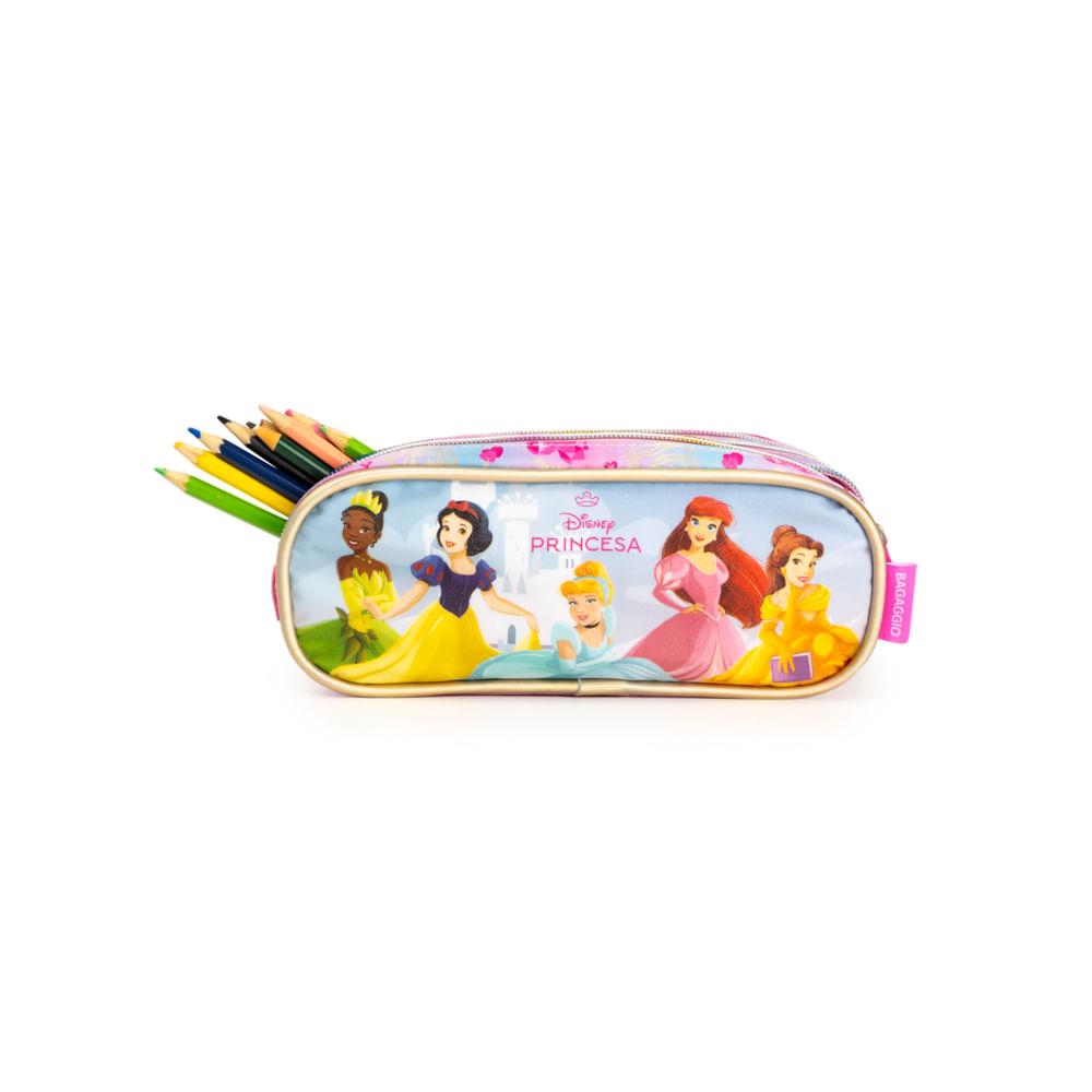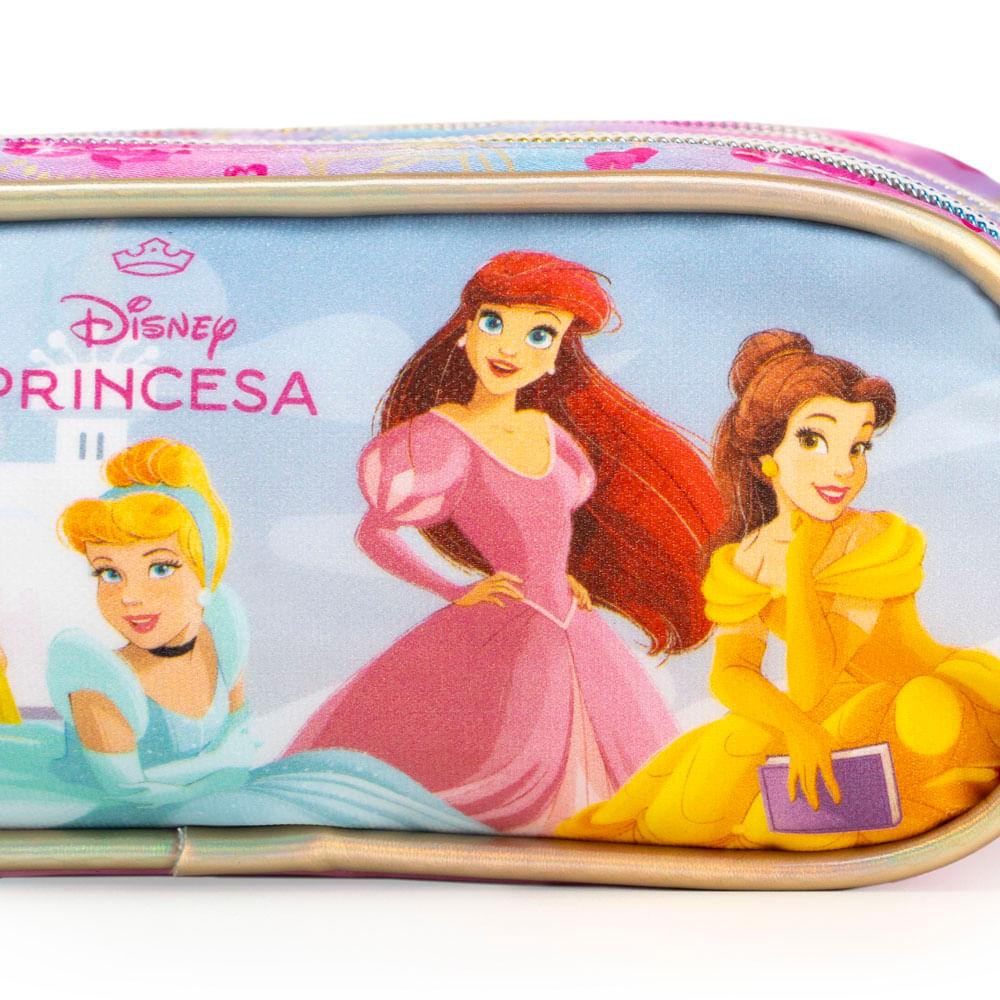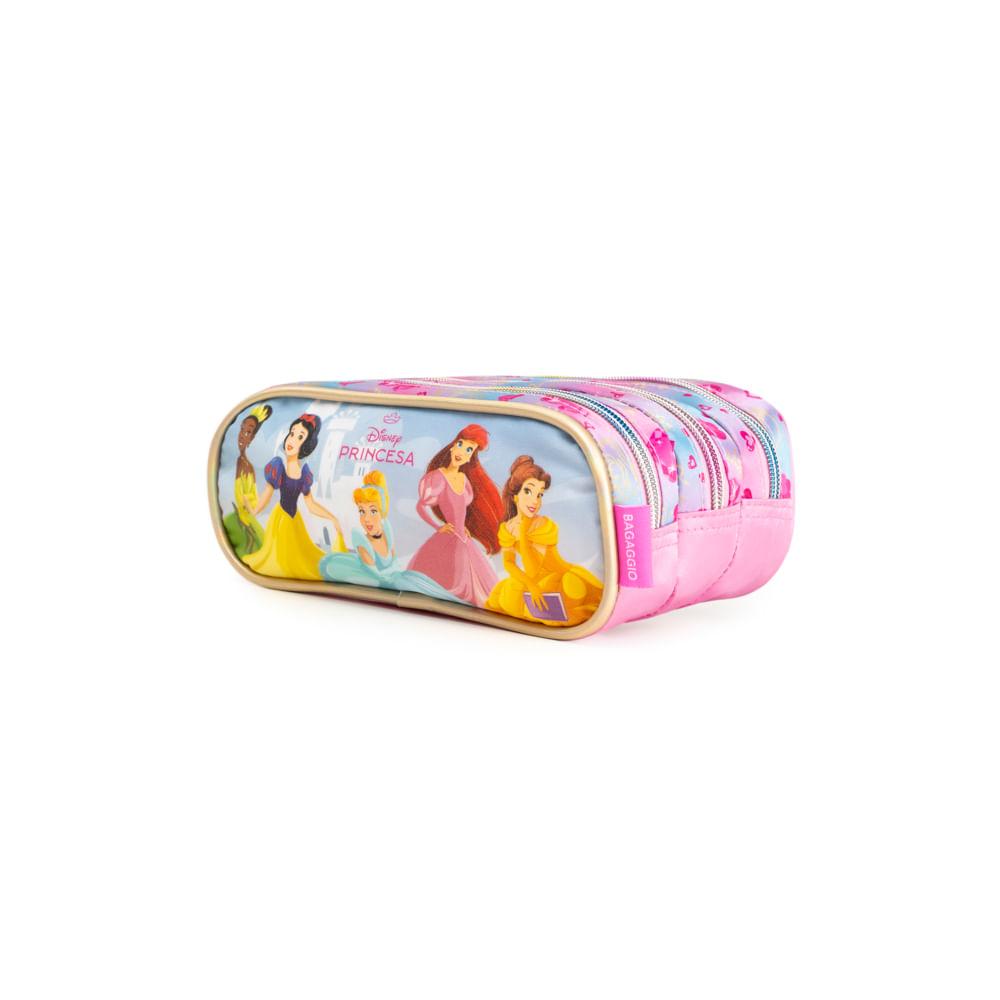 Estojo Escolar Feminino Médio Princesas 3 Compartimentos Rosa