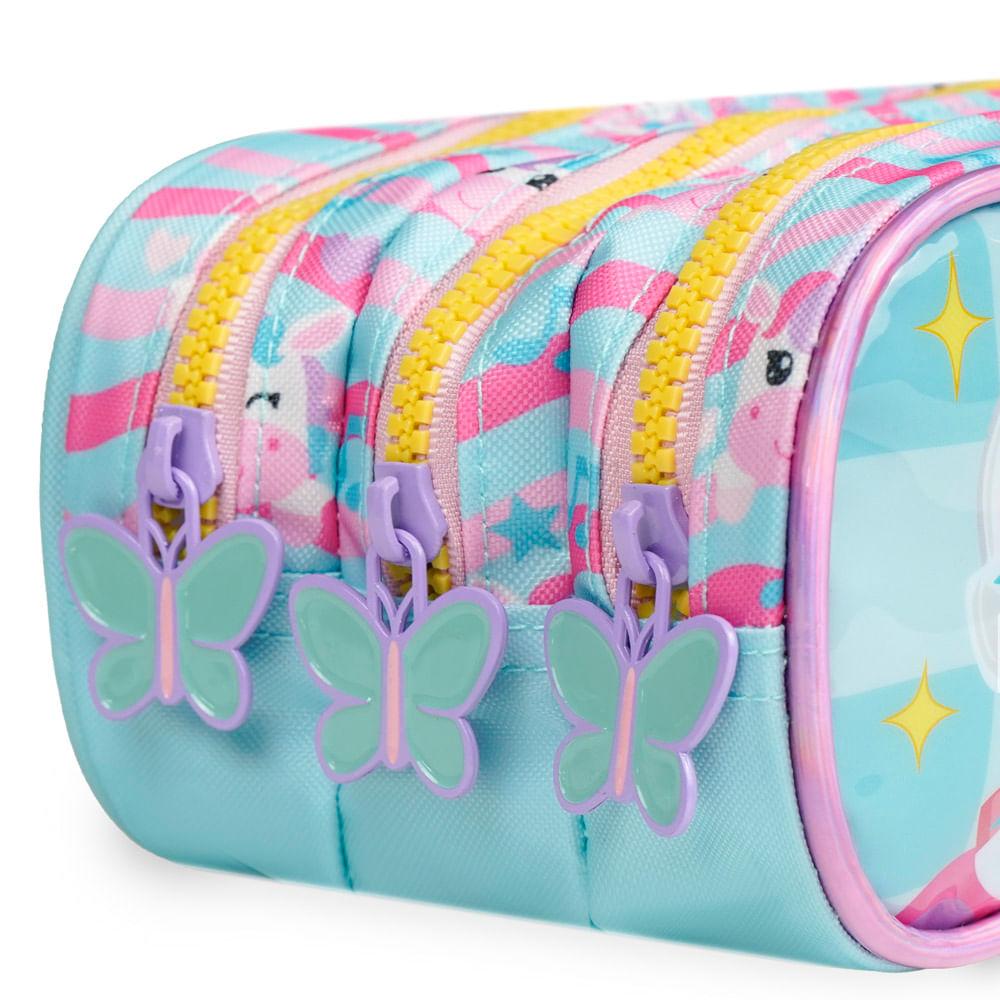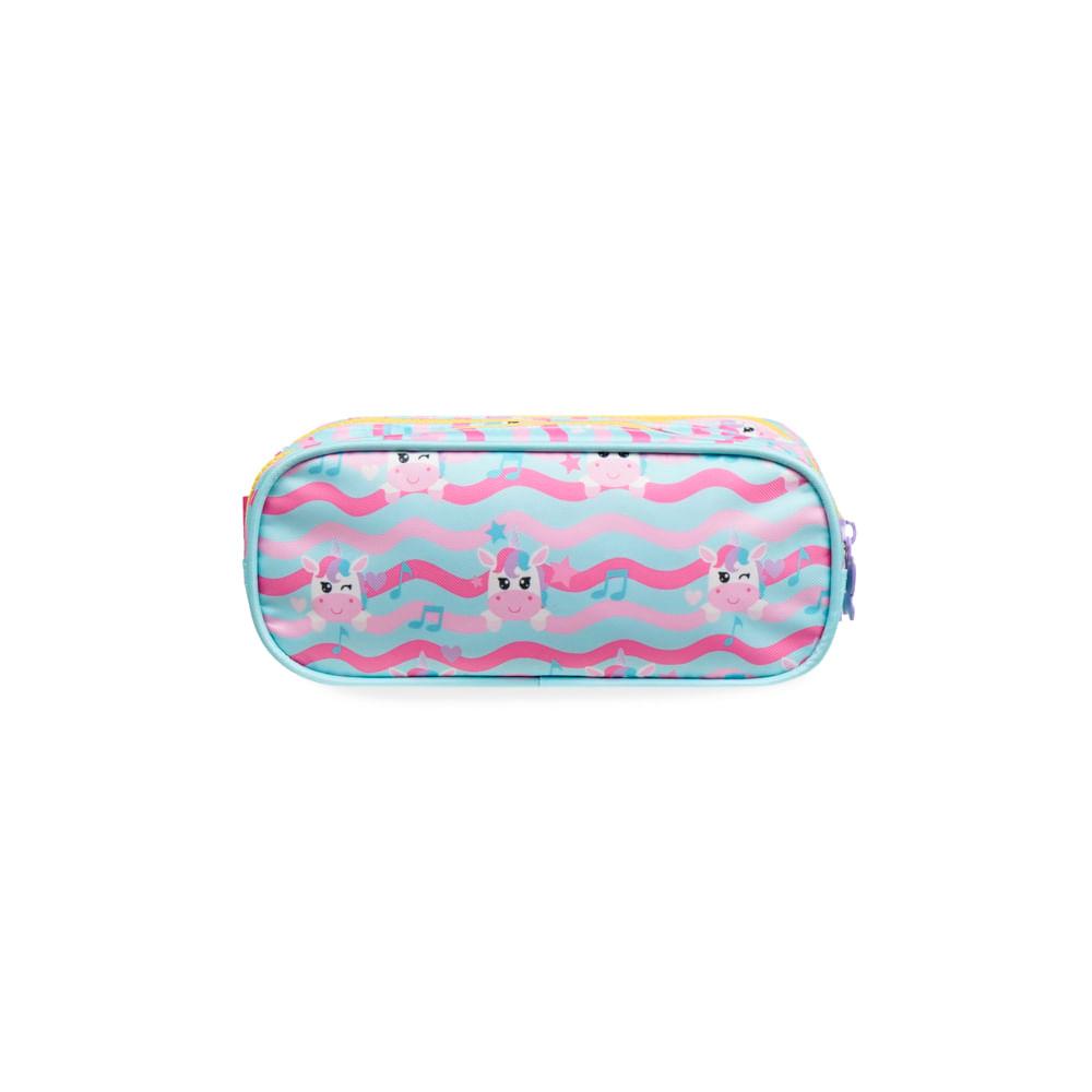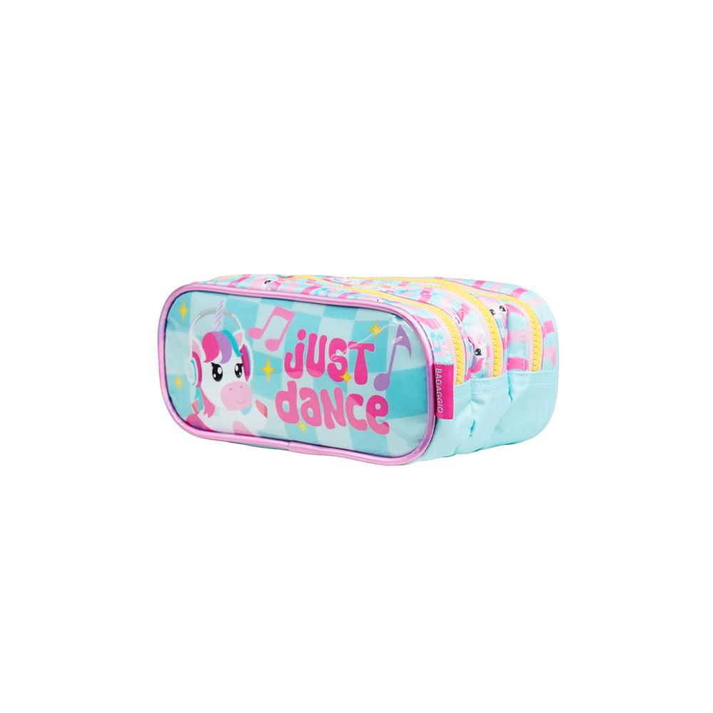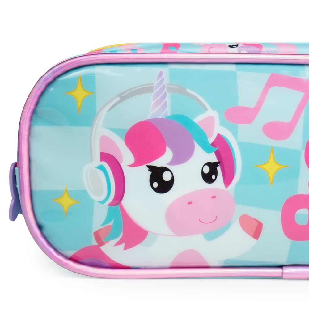 Estojo Escolar Feminino com 3 Compartimentos Unicórnio Just Dance Verde Água
