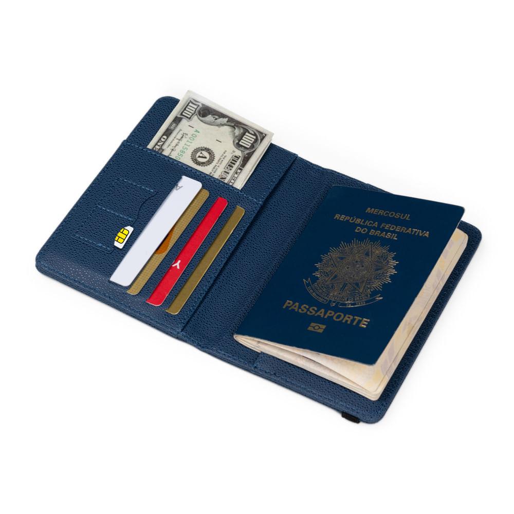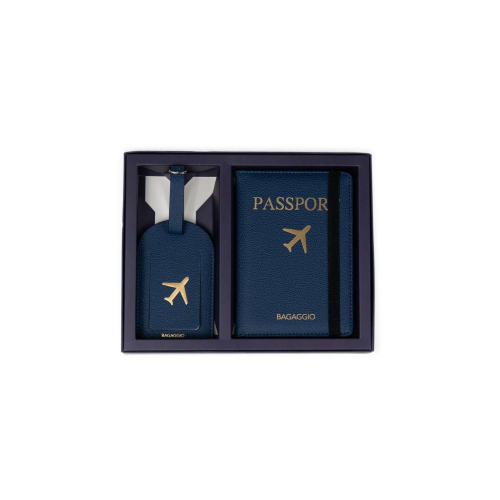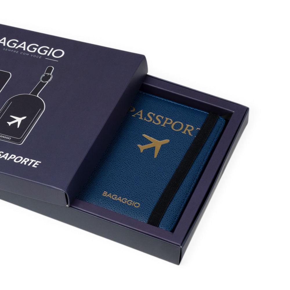 Kit Etiqueta e Porta Passaporte Travel Azul Escuro