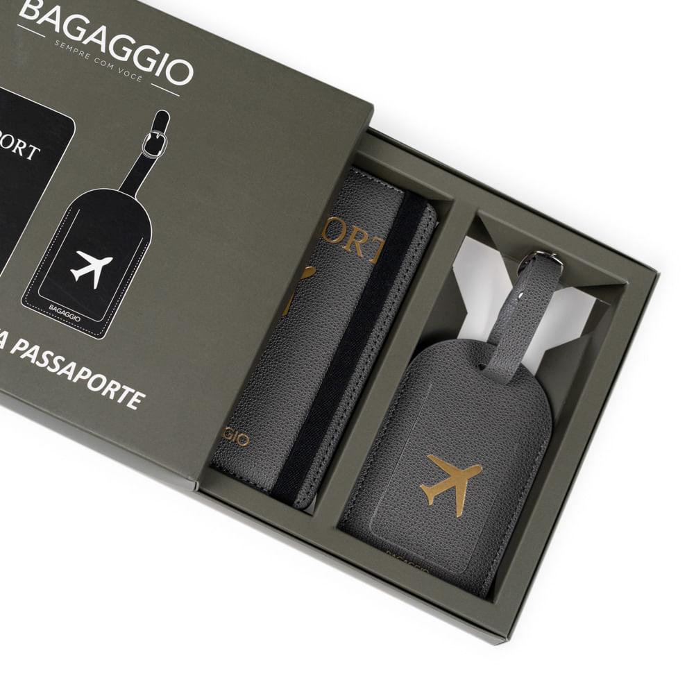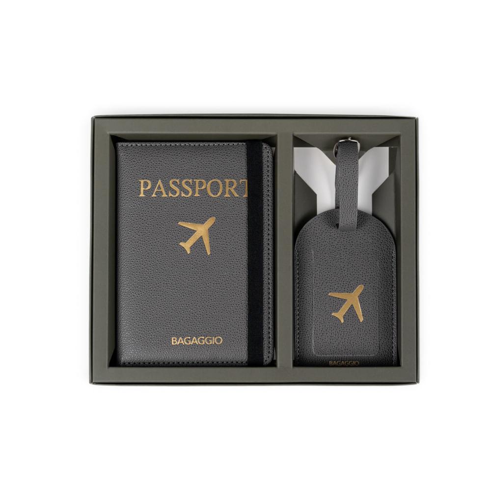 Kit Etiqueta e Porta Passaporte Travel Cinza