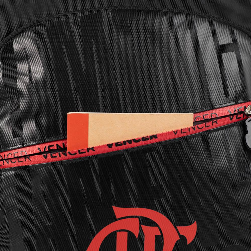 Kit Mochila e Nécessaire Flamengo OficialA mochila possui design moderno e exclusivo, com acabamento em preto e detalhes em vermelho, trazendo o escudo CRF em destaque e a inscrição “VENCER” na faixa frontal, reforçando a identidade e a tradição do clube. Ideal para escola, trabalho, passeios ou uso diário.Produzida em material resistente, conta com compartimento principal espaçoso, bolsos com zíper e alças acolchoadas e ajustáveis, garantindo mais conforto durante o transporte.Especificações: Material: Poliéster Dimensões: Mochila: 41 x 30 x 19 cm | Necessaire: 15 x 24 x 12 cmPeso: Mochila: 0,49 kg | Necessaire: 0,18 kgCapacidade: Mochila: 23,3 L | Necessaire: 4,32 LGarantia: 90 dias Faixa etária: Juvenil (12+ anos)Outros atributos:- Design personalizado do Flamengo.- Alças acolchoadas e ajustáveis. - Bolso lateral para garrafa.- Zíper personalizado. - Nécessaire prática e funcional.