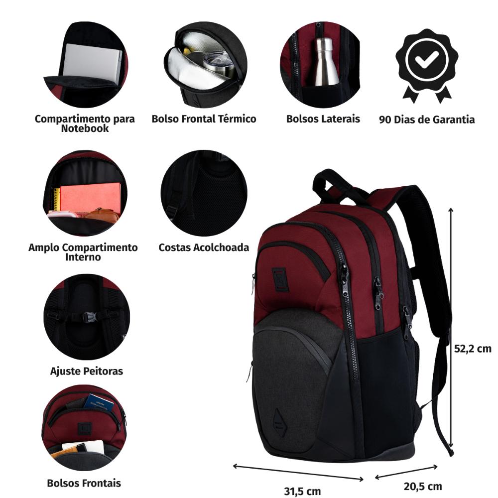 Mochila Escolar Masculina High Shape III para Notebook VinhoCor: PretoAtributos: Para notebookGênero: MasculinoMarca: BagaggioRodas: Sem RodasMaterial: PoliésterDivisórias Internas: Divisórias internas A mochila contém divisórias internas que facilitam a sua organização no dia a dia.Idade: Adulto: Dimensões: 46 X 30 X 18 CM