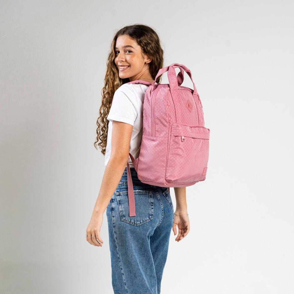 Mochila Escolar Feminina Juvenil Polka Dots Rosa