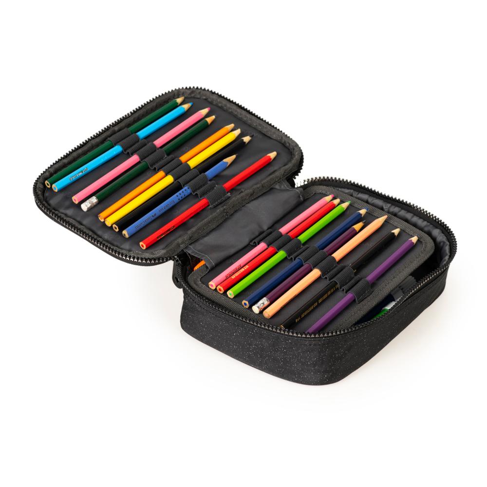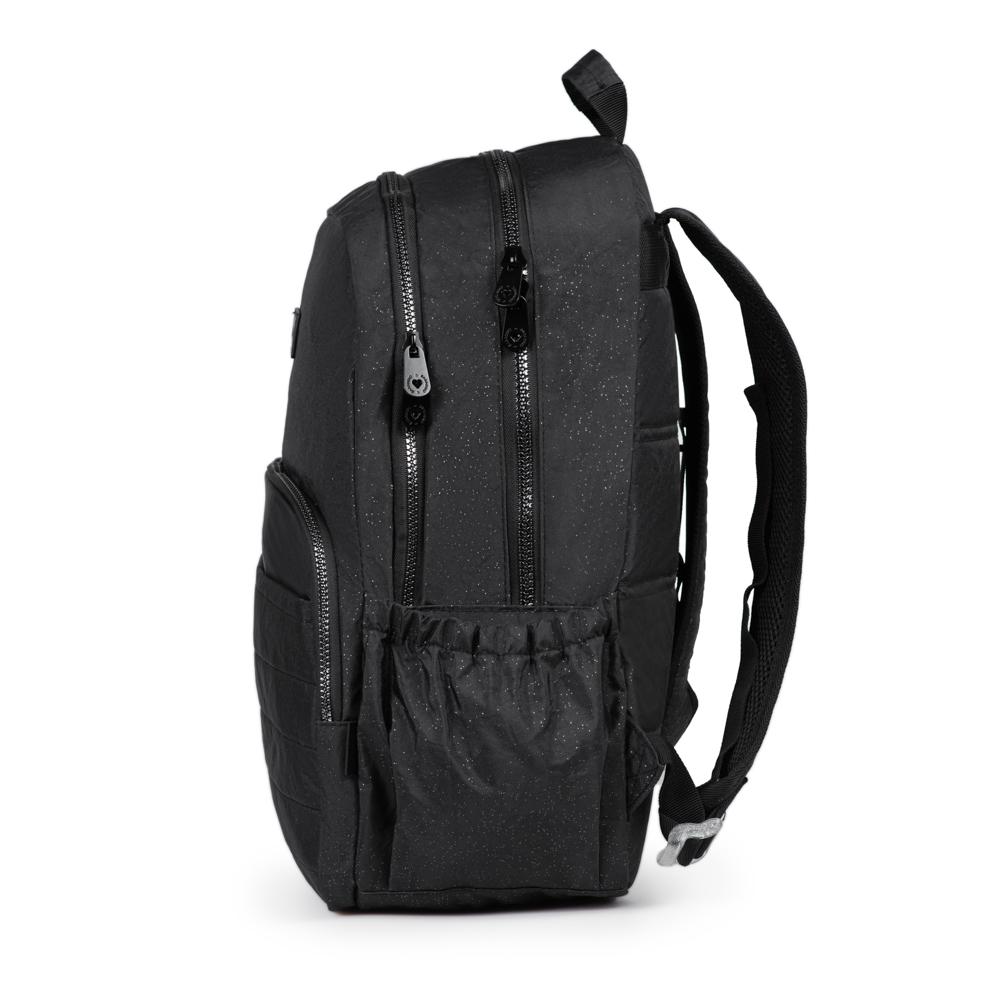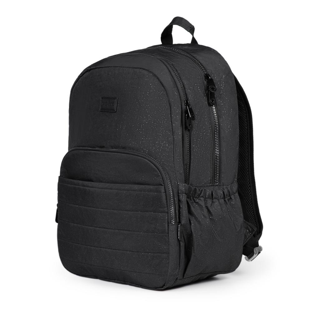 Kit Mochila + Lancheira + Estojo Juvenil Feminino Crinkle Glitter PretaCom acabamento crinkle e detalhes em glitter, o kit traz um visual moderno e sofisticado, perfeito para o público juvenil. A mochila oferece ótimo espaço interno para livros, cadernos e materiais escolares, além de alças acolchoadas e ajustáveis, garantindo conforto no uso diário.A lancheira térmica ajuda a manter alimentos organizados e protegidos, ideal para a rotina escolar ou passeios. Já o estojo combinando facilita a organização de lápis, canetas e pequenos acessórios.Especificações: Material: Poliéster Dimensões:Mochila: 44 x 32 x 16 cm | Lancheira: 20 X 26 X 13,5 cm | Estojo: 15,5 x 21,5 x 5,5 cmPeso: Mochila: 0,5 kg | Lancheira: 0,2 kg | Estojo: 0,2 kgCapacidade:Mochila: 22,5 L | Lancheira: 7 L| Estojo: 1,8 LGarantia: 90 dias Faixa etária: Juvenil ( 12+anos)Outros atributos:- Itens personalizados com glitter. - Alças acolchoadas e ajustáveis. - Bolso lateral para garrafa.- Estojo com elásticos para a organização de materiais. - Lancheira é térmica.