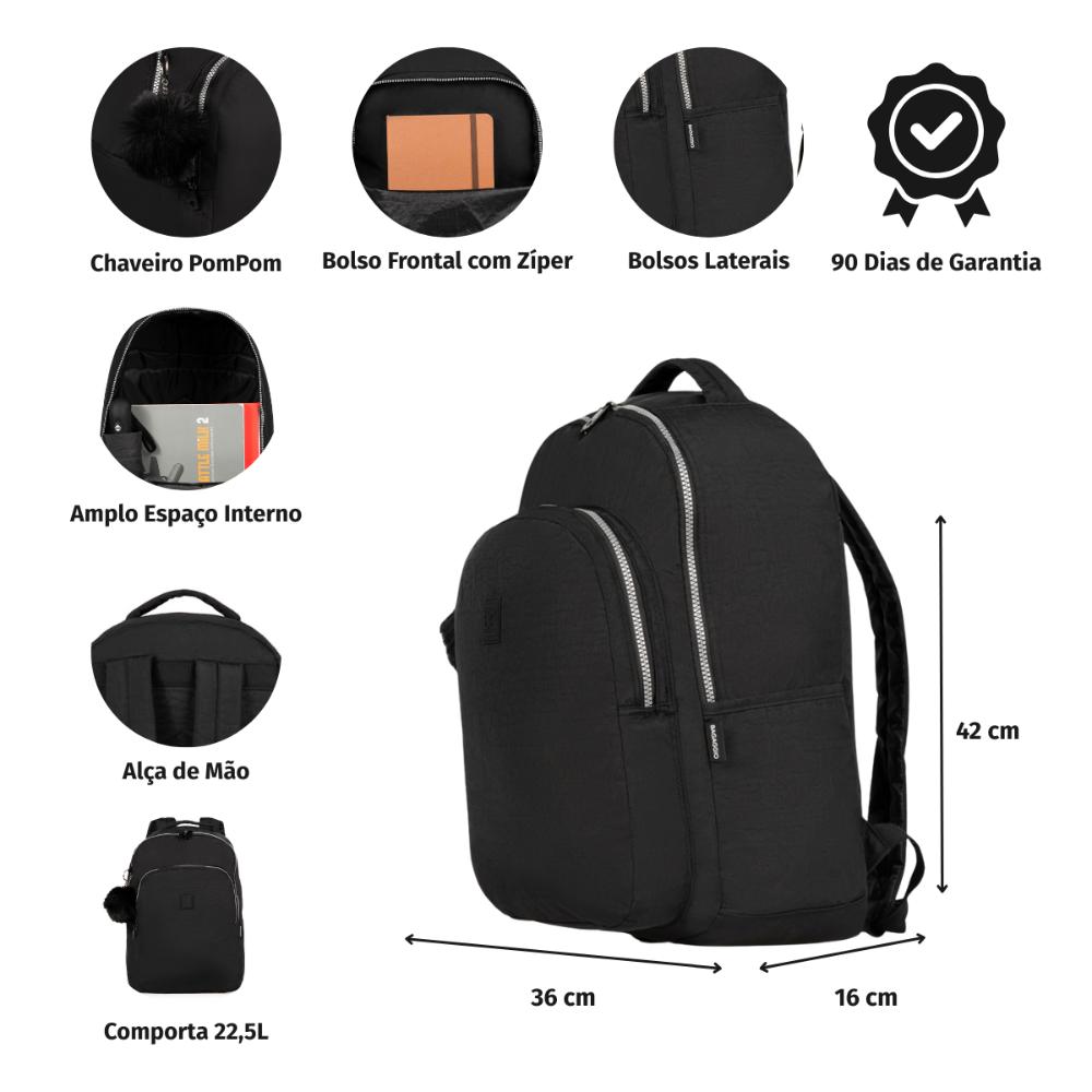 Mochila Escolar Feminina Pop Fun Azul Claro A Mochila Pop Fun 25J Azul Claro é o toque de estilo e praticidade que você precisa para o dia a dia! Com design minimalista e cor vibrante, ela traz um charme único, além de ser super funcional. Conta com alças acolchoadas ajustáveis, compartimentos espaçosos e um lindo chaveiro pompom que dá um toque divertido ao look. Disponível nos tamanhos: 44 x 32 x 16 cm Principais Características: - Amplo espaço interno: Perfeita para levar seus itens essenciais, desde livros a gadgets, com muito espaço para organizar tudo. - Alças acolchoadas e ajustáveis: Suas alças acolchoadas proporcionam mais conforto durante o uso. - Chaveiro pompom O chaveiro de pompom é o detalhe extra que destaca essa mochila, garantindo um visual moderno e descolado. - Alta durabilidade: Fabricada com materiais de alta qualidade, oferece resistência para o uso diário. Bagaggio responde Esse estojo da Bagaggio tem garantia? Sim, o estojo conta com 90 dias de garantia para defeitos de fábrica.