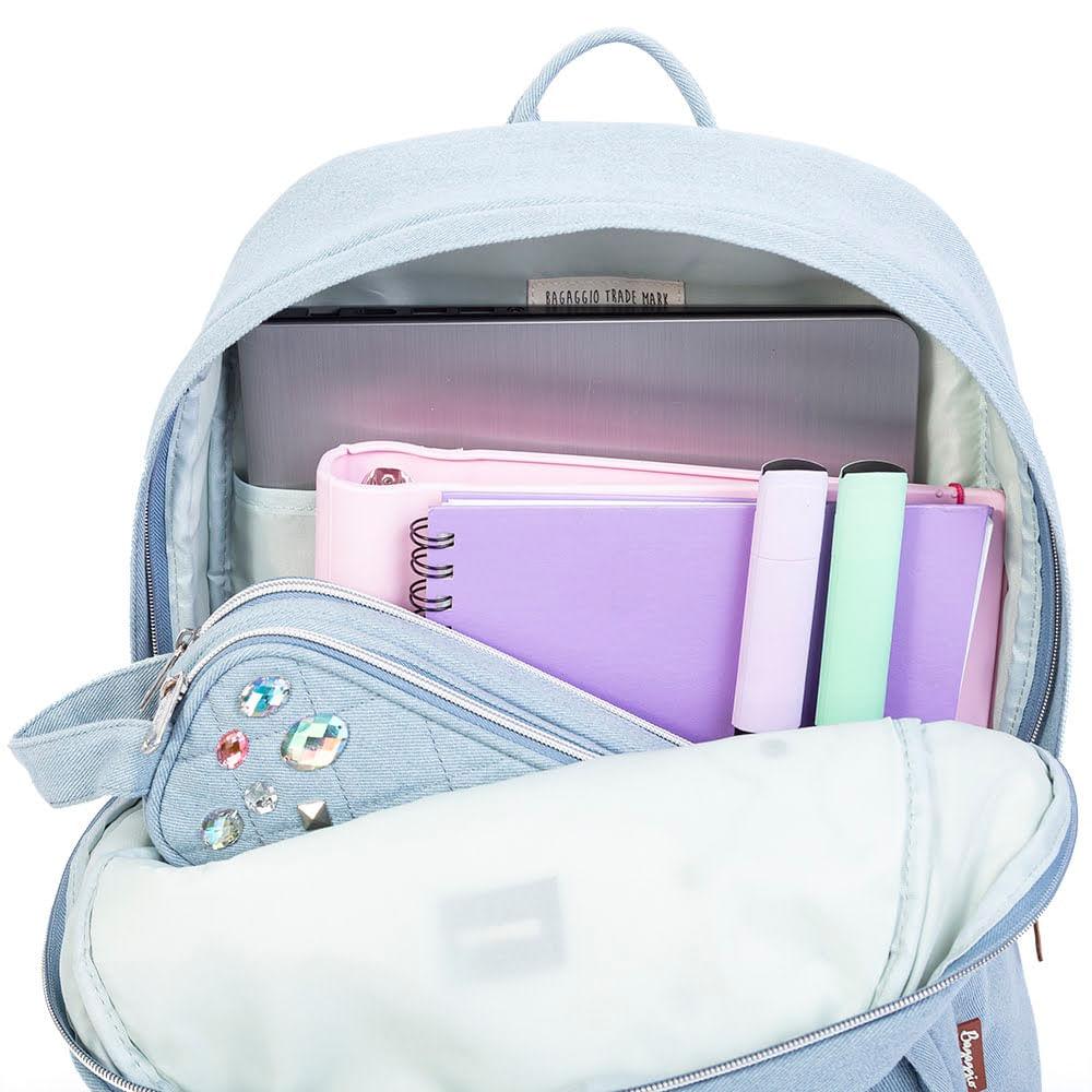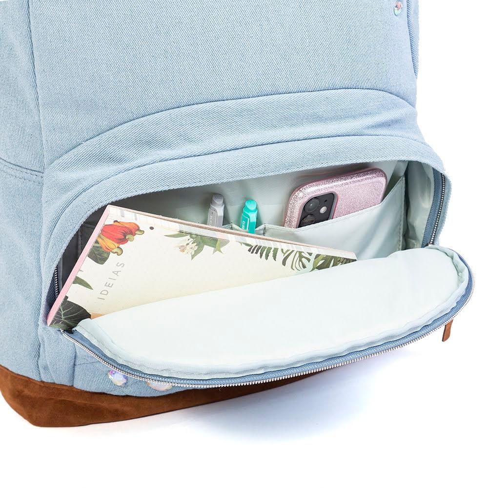 Mochila Escolar Feminina Stone Jeans Azul