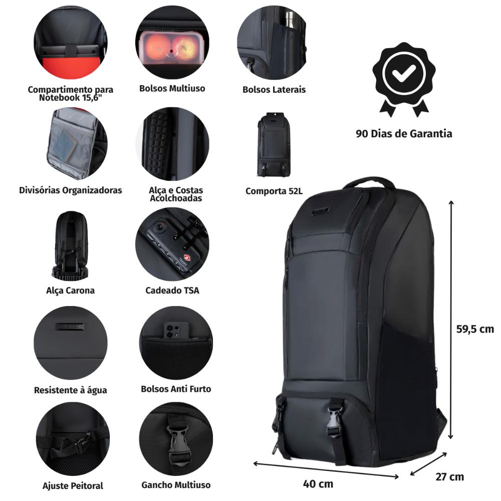 A Mochila Advanced é ideal para quem busca praticidade, organização e segurança, seja no dia a dia ou em viagens. Seu design moderno e funcional atende às necessidades de profissionais e viajantes, oferecendo conforto e estilo.Principais Atributos:Compartimento para NotebookEspaço acolchoado que garante proteção extra para notebooks e tablets.Bolso AntifurtoLocal discreto para guardar itens valiosos com segurança.Bolsos Externos MúltiplosPerfeitos para armazenar acessórios, garrafas e objetos de fácil acesso.Material Resistente à ÁguaProtege seus pertences mesmo em dias de chuva.Alças Ajustáveis e ConfortáveisPermitem ergonomia no uso diário.