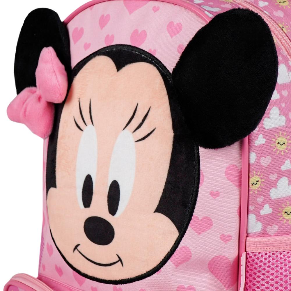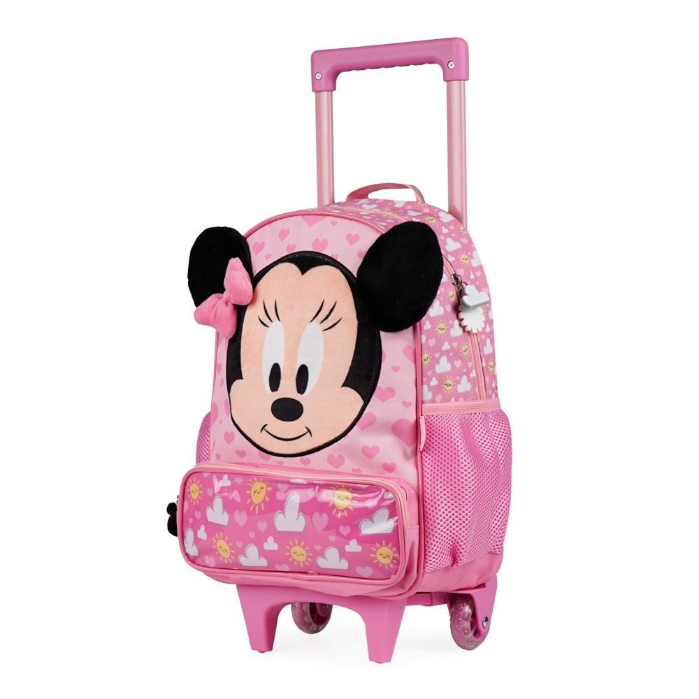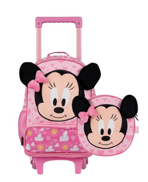Kit Mochila com Rodinhas + Lancheira Minnie Encanto, Conforto e Praticidade para o Dia a Dia!Encante sua pequena com o Kit Minnie, composto por uma charmosa mochila com rodinhas e uma lancheira super fofa, ambas com design inspirado na personagem mais amada da Disney. O conjunto chega em um delicado tom de rosa, com detalhes em corações, flores e o irresistível rosto da Minnie em 3D com laço e orelhinhas em tecido, trazendo aquele toque de fofura que faz toda a diferença.A mochila conta com puxador resistente, bolsos laterais, compartimento espaçoso e material durável — perfeita para acompanhar a criança na escola, passeios ou viagens. Já a lancheira complementa o conjunto com estilo, mantendo lanches organizados e fácil de carregar.Ideal para meninas que adoram a Minnie, o kit combina praticidade, diversão e conforto, tornando a rotina muito mais alegre.Especificações: Material: Poliéster 5 x 12 Cm | Lancheira 24 x 20 x 10 cmPeso: Mochila: 0,91kg | Lancheira: 0,23 kgCapacidade: Mochila 10,7 L | Lancheira 4,8 LGarantia: 90 dias Faixa etária: Pré Escolar (0 a 3 anos)Outros atributos:- Alças acolchoadas e ajustáveis. - Zíper personalizado. - Detalhes em pelúcia. - Tag para identificação.- Mochila 2 em 1: Com alças nas costas. - Lancheira é térmica.