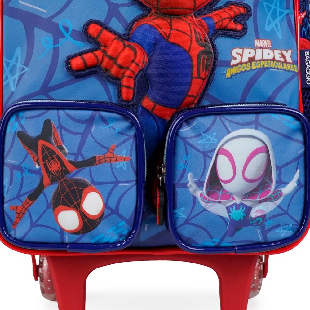 Kit Mochila de Rodinha e Lancheira Spidey Baby 3D Azul