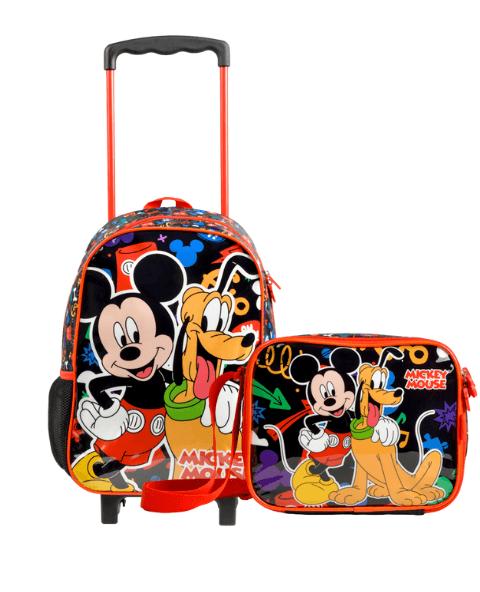 Kit Mochila de Rodinha e Lancheira Térmica Infantil Masculina Mickey Preta