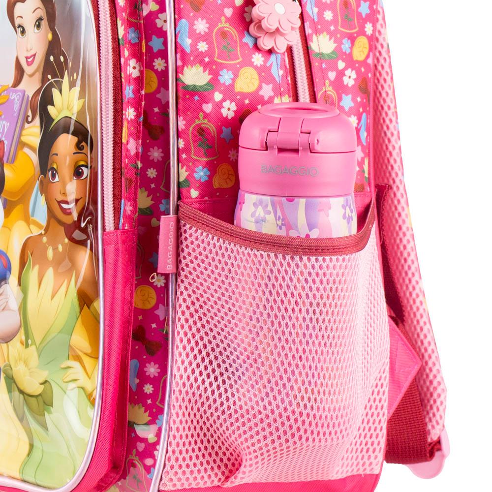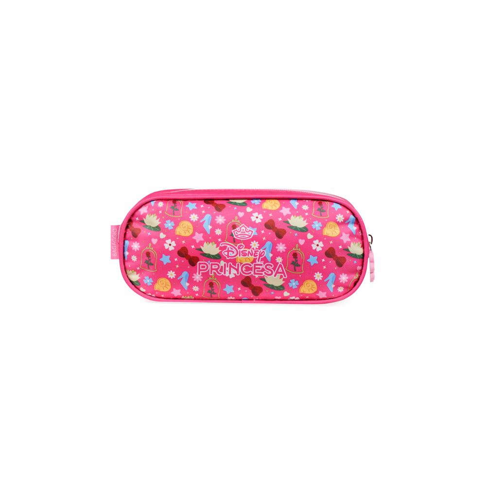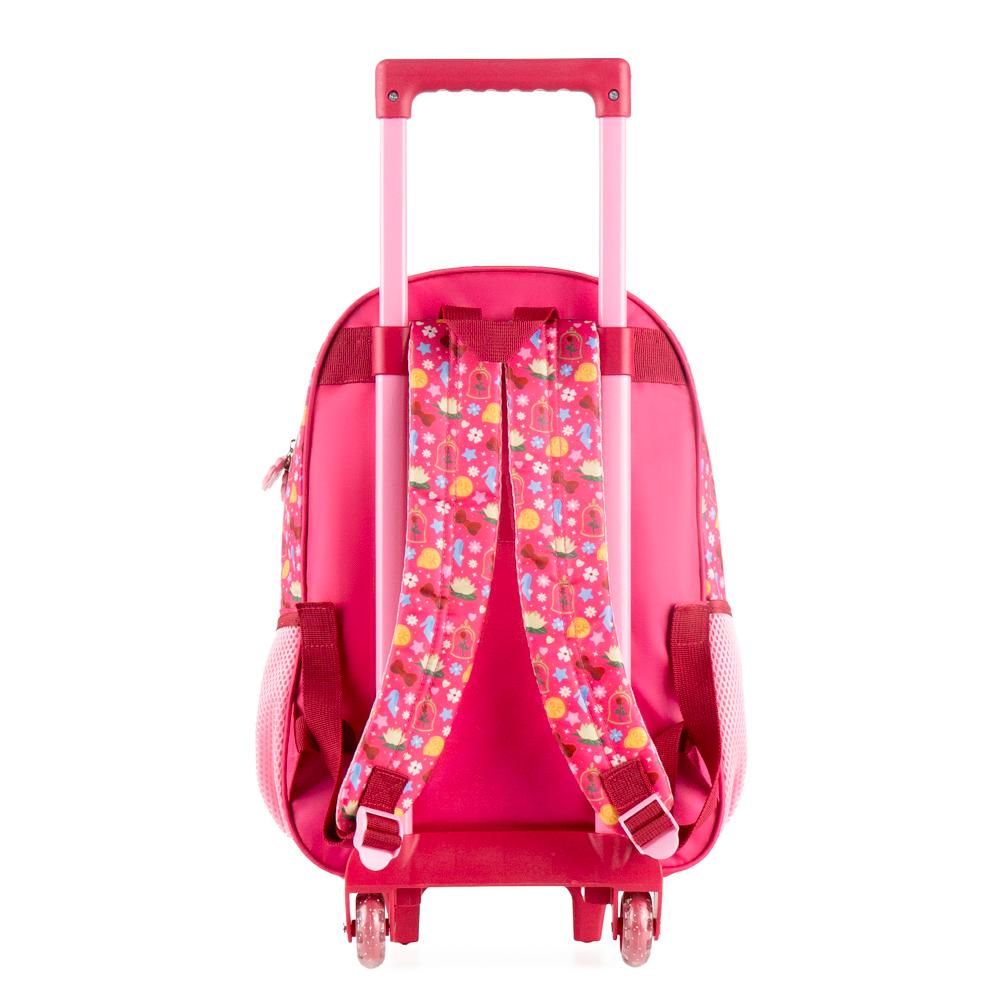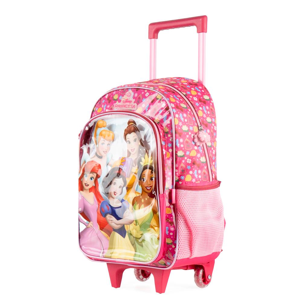 Kit Mochila de Rodinha, Lancheira Térmica e Estojo Escolar Feminino Princesas Rosa
