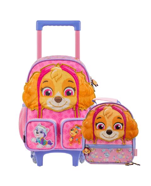 Kit Mochila de Rodinha e Lancheira Térmica Infantil Feminina Patrulha Canina Skye Baby Rosa Clara
