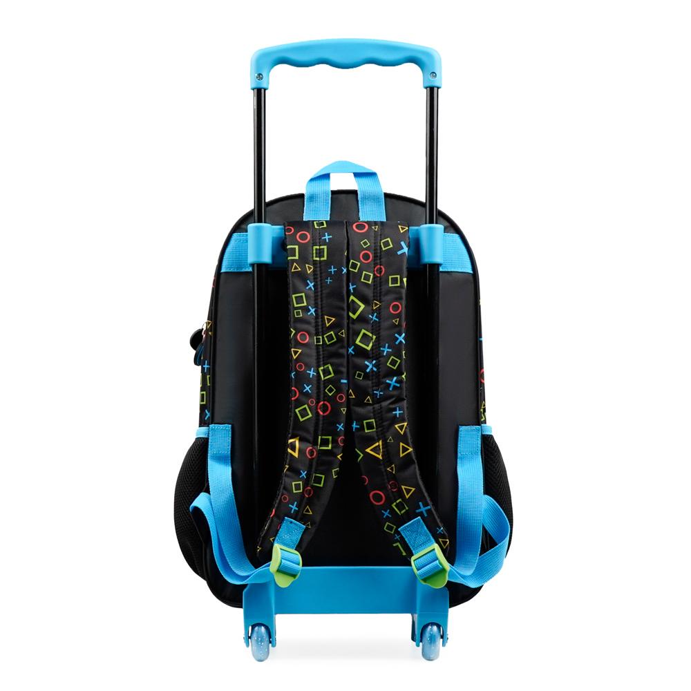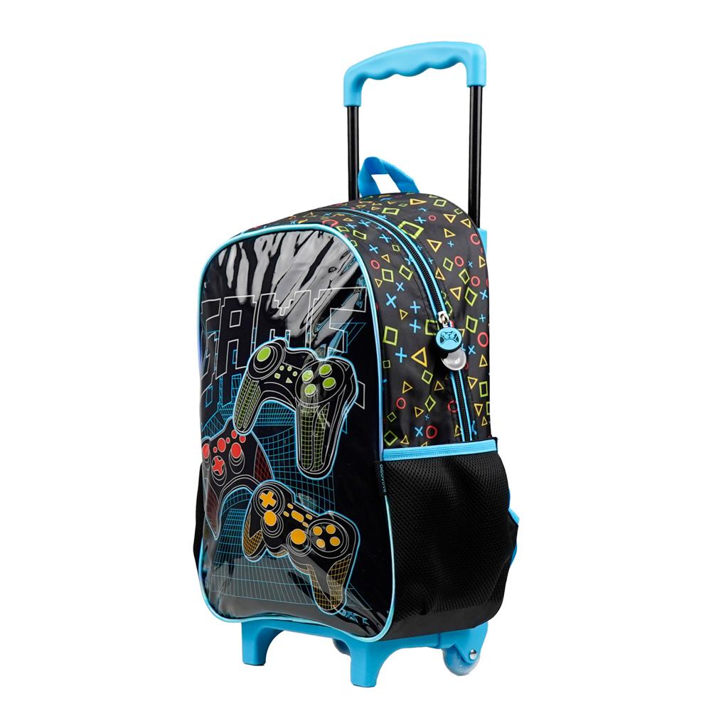 Kit Escolar Video GameEste conjunto inclui a Mochila de Rodinhas Gamer Infantil e uma Lancheira. A mochila possui um design moderno com estampa de Controles e Manetes, destacando-se pelas cores preto e azul turquesa vibrante. Otimizada para o conforto e transporte, ela conta com rodinhas de alta resistência. possui amplo espaço interno e puxadores personalizados em formato de controle. A lancheira acompanha o design temático e é ideal para o lanche escolar. Garanta o melhor em material escolar para meninos e meninas que amam o universo dos jogos com este kit Gamer exclusivo para a volta às aulas.Especificações:Dimensões: Mochila 41 x 30 x 15Cm | Lancheira 19 x 24 x 9,5 CmPeso: Mochila: 0,80 Kg | Lancheira: 0,19 KgMaterial:PoliésterCapacidade: Mochila 18,4 L | Lancheira 4,3 LGarantia: 90 diasFaixa etária: Infantil (3 a 8 anos) Outros atributos:- Zíper personalizado.- Espaço para tag de identificação - Lancheira é térmica. - Rodinhas de silicone. - Alça carona.