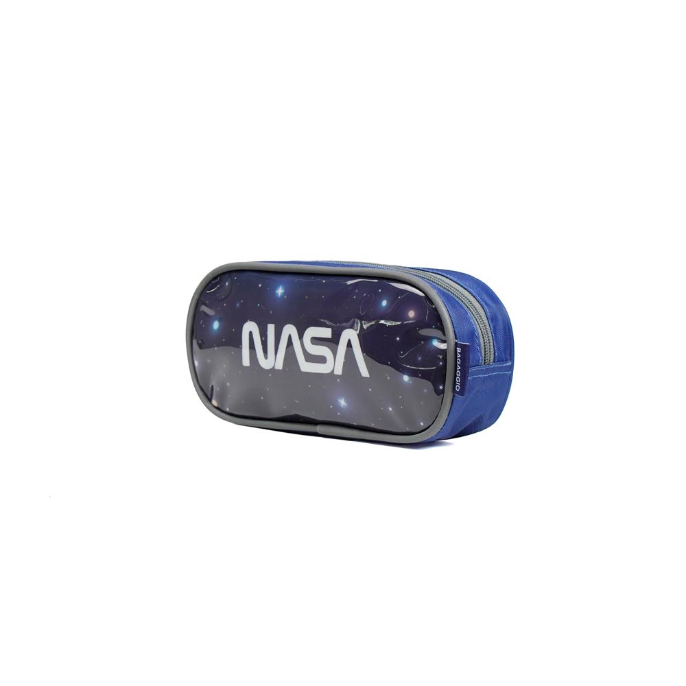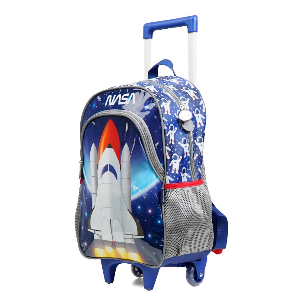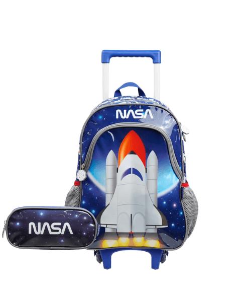 Kit Mochila de Rodinhas e Estojo Escolar Foguete Nasa Azul