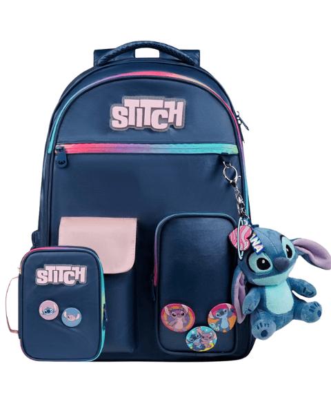 Prepare-se para a volta às aulas com estilo e muita fofura com este Kit Escolar do Stitch. O conjunto é protagonizado por uma mochila espaçosa em azul marinho com detalhes em rosa e arco-íris, que inclui um adorável chaveiro de pelúcia do Stitch no zíper e boton exclusivo, e para organizar lápis e canetas, o estojo escolar segue o mesmo design encantador, completo com dois botons do Stitch. Este é o kit de material escolar perfeito para fãs que querem levar a magia da Disney para todos os lugares!Especificações:Dimensões: Mochila: 42 x 28 x 13,5 cm | Lancheira: 16 x 23 x 18 cm | Estojo: 14,5 x 21 x 5,5 cmPeso: Mochila: 0,6 kg | Lancheira: 0,29kg | Estojo: 0,22kgMaterial:PoliésterCapacidade: Mochila: 15,8 L | Lancheira: 6,6 L | Estojo: 1,6 LGarantia: 90 diasFaixa etária: Infantil (3 a 8 anos) Outros atributos:- Zíper personalizado.- Patches decorativos do Stitch. - Lancheira é térmica. - 1 chaveiro personalizado.- Dois bolsos frontais pequenos. - Alça carona. - Estojo com elásticos para organização de diversos materiais.