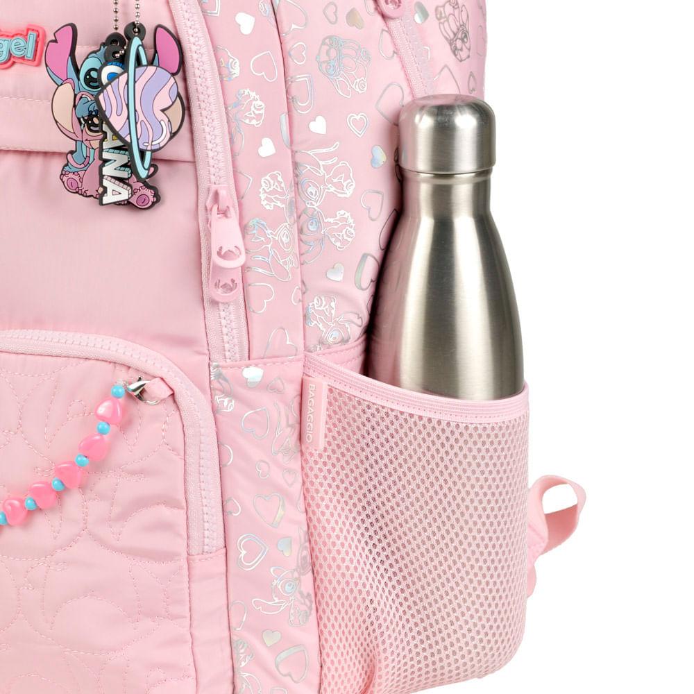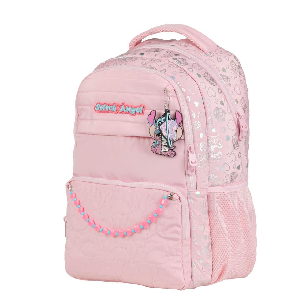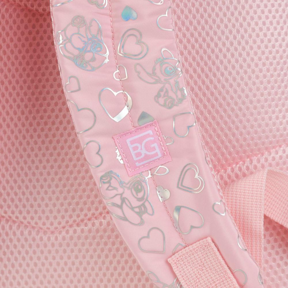 Mochila Escolar Feminina Stitch & Angel Rosa Claro