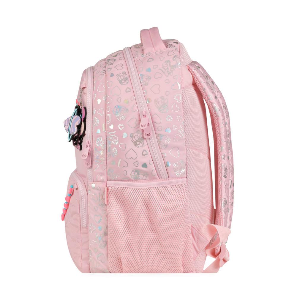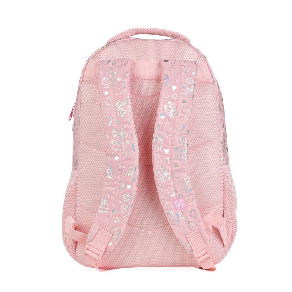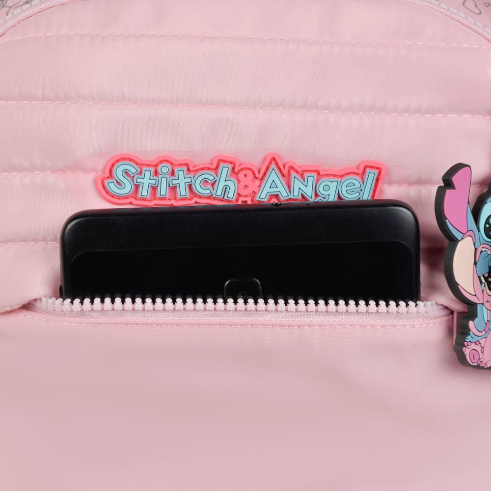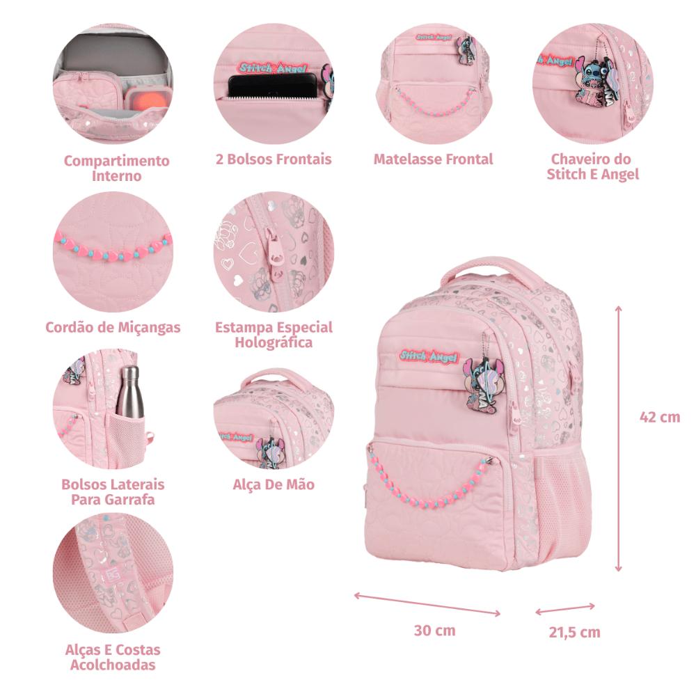 Mochila Escolar Feminina Stitch & Angel Rosa Claro