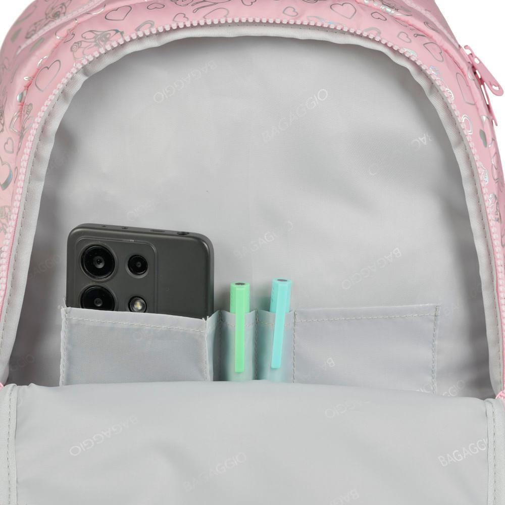 Mochila Escolar Feminina Stitch & Angel Rosa ClaroAcessórios Removíveis: Acessórios removíveis Acessórios removíveis.Divisórias Internas: Divisórias internas A mochila contém divisórias internas que facilitam a sua organização no dia a diaEspecificações: Material: PoliésterTamanho: 42 x 30 x 21,5 cmPeso: Mochila: 1kgCapacidade: 27LGarantia: 90 diasFaixa etária: Infanto Juvenil (8 a 12 anos)Outros atributos: -Acessórios e apliques decorativos.- Alças nas costas personalizadas. - Costas acolchoadas. - Bolso lateral para garrafa.Atenção! A mochila não contem vasilhas, garrafas ou qualquer item adicional.