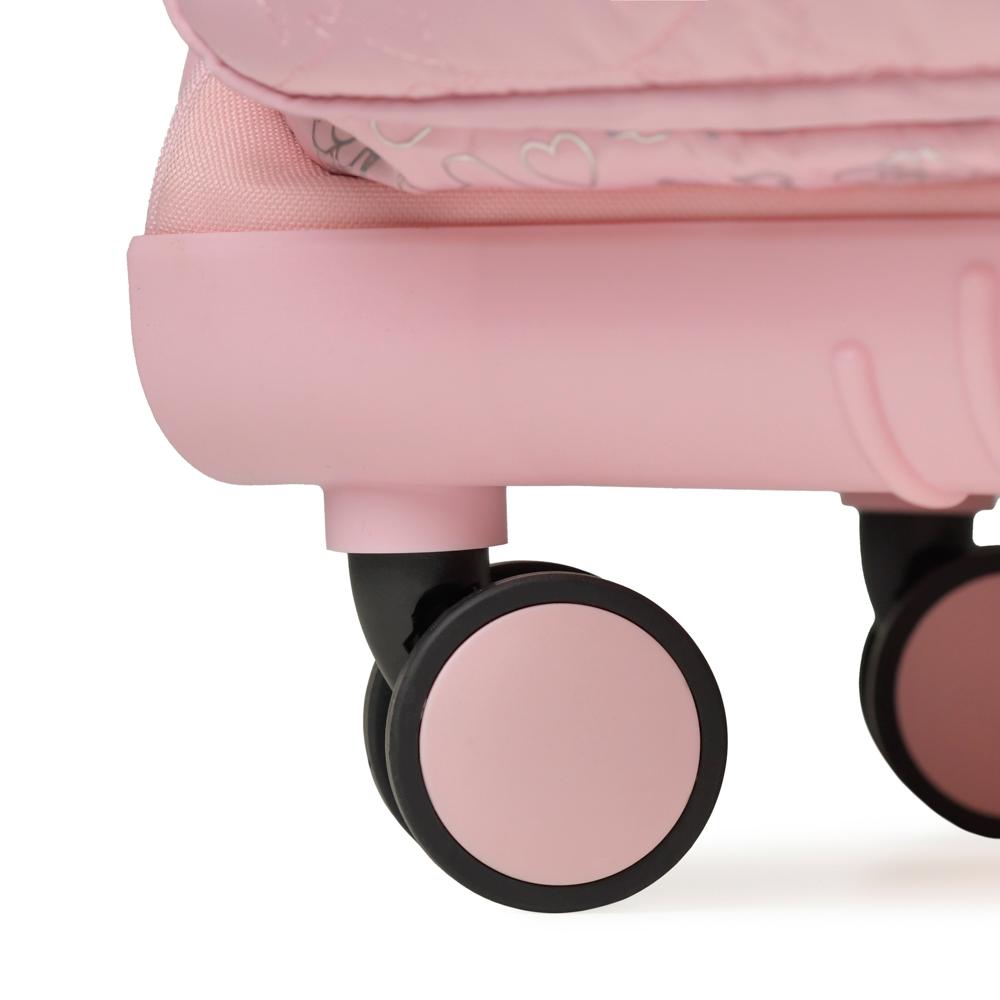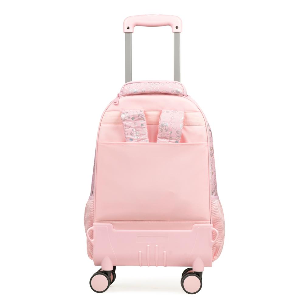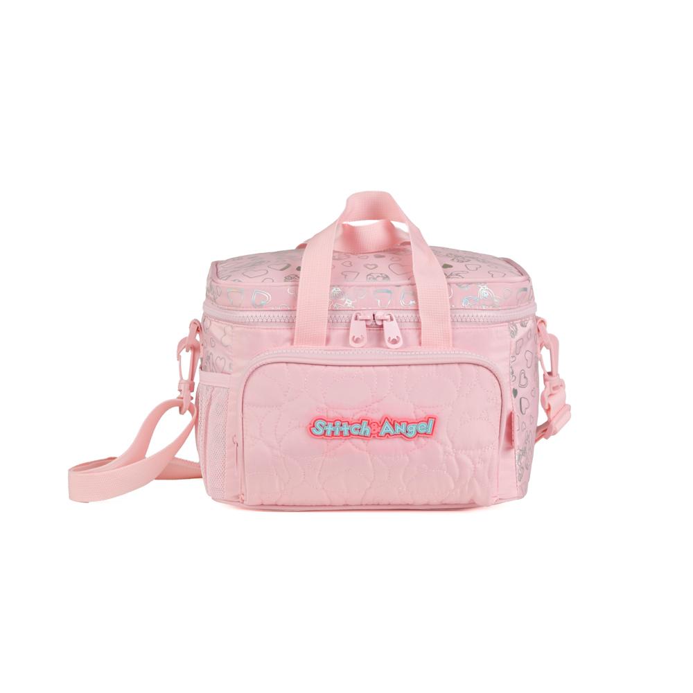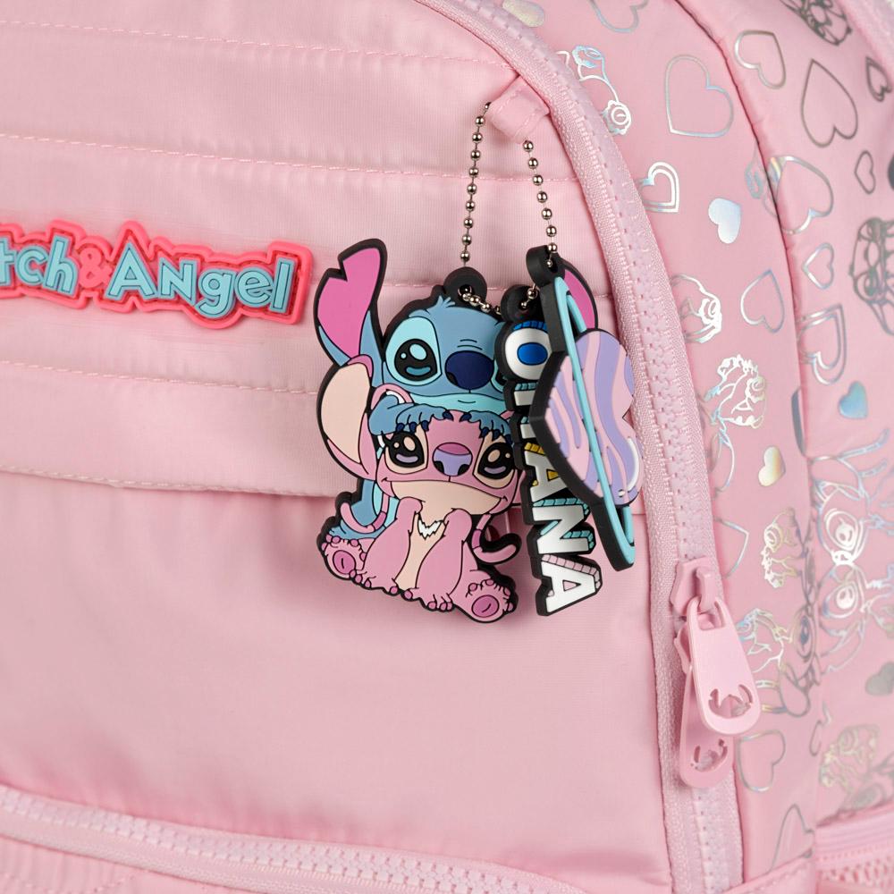 Kit Mochila de 4 rodinhas + Lancheira Térmica Feminina Stitch & Angel Rosa Claro