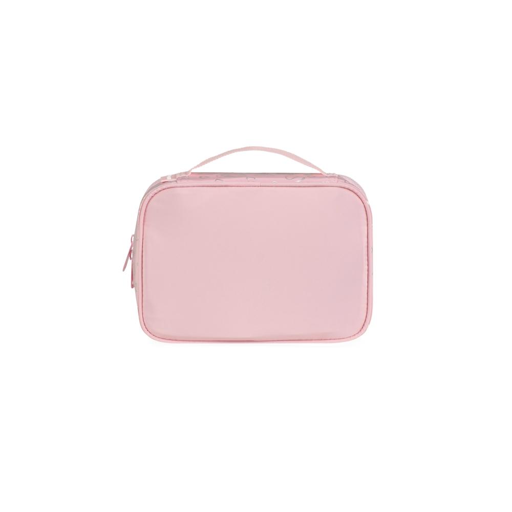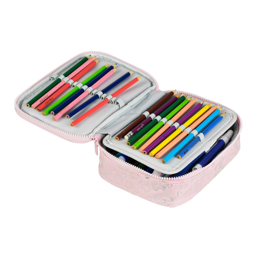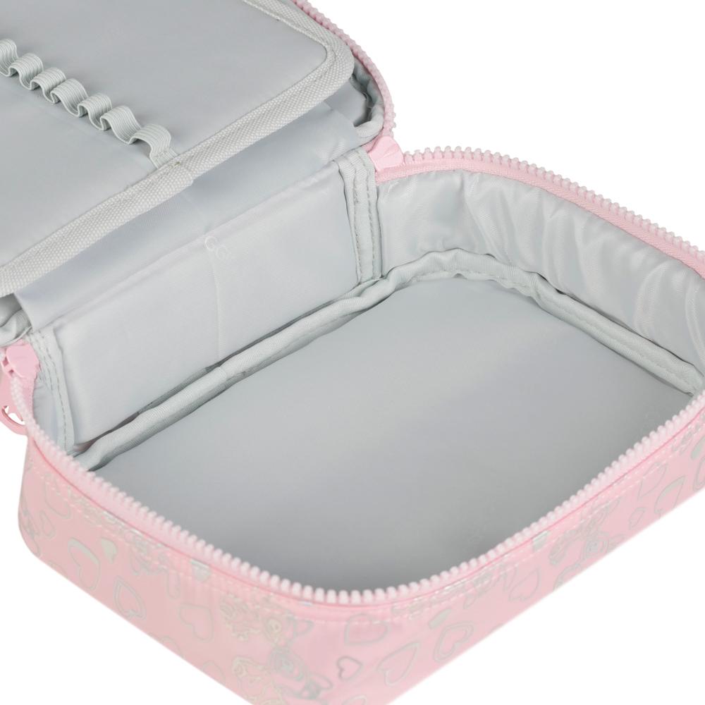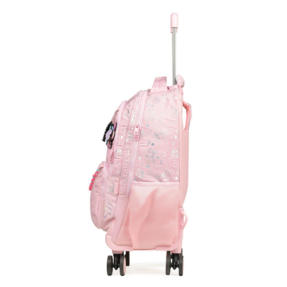Kit Mochila de 4 rodinhas + Estojo Escolar Feminino Grande Stitch & Angel Rosa Claro
