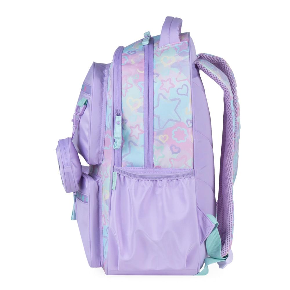Mochila Escolar Feminina Juvenil Star Candy Lilás