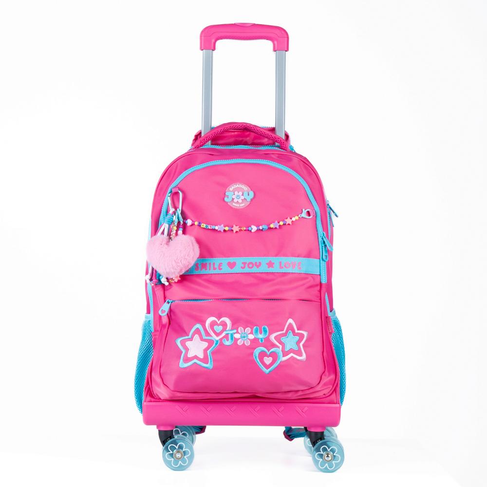 Kit Mochila de Rodinha Feminina + Estojo Box BG Joy Rosa
