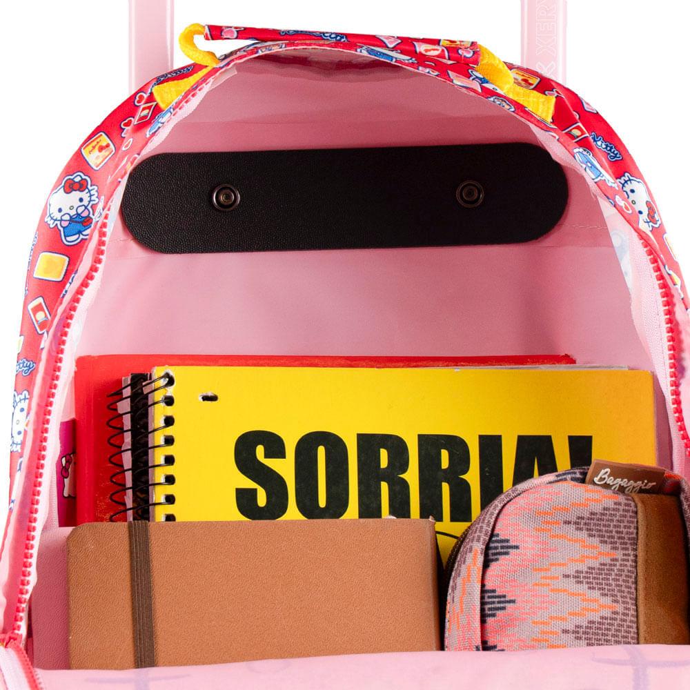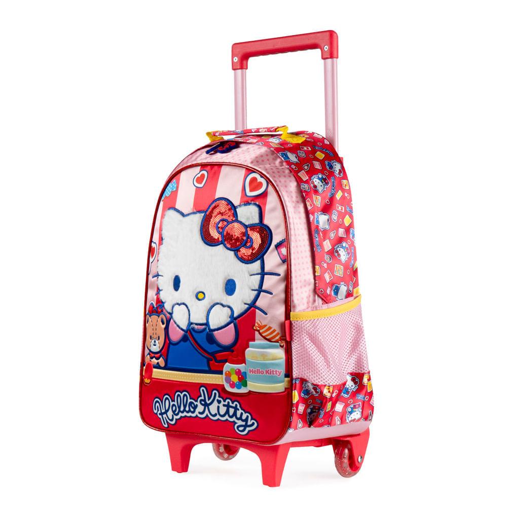 Mochila de Rodinha Escolar Feminina Hello Kitty Vermelha